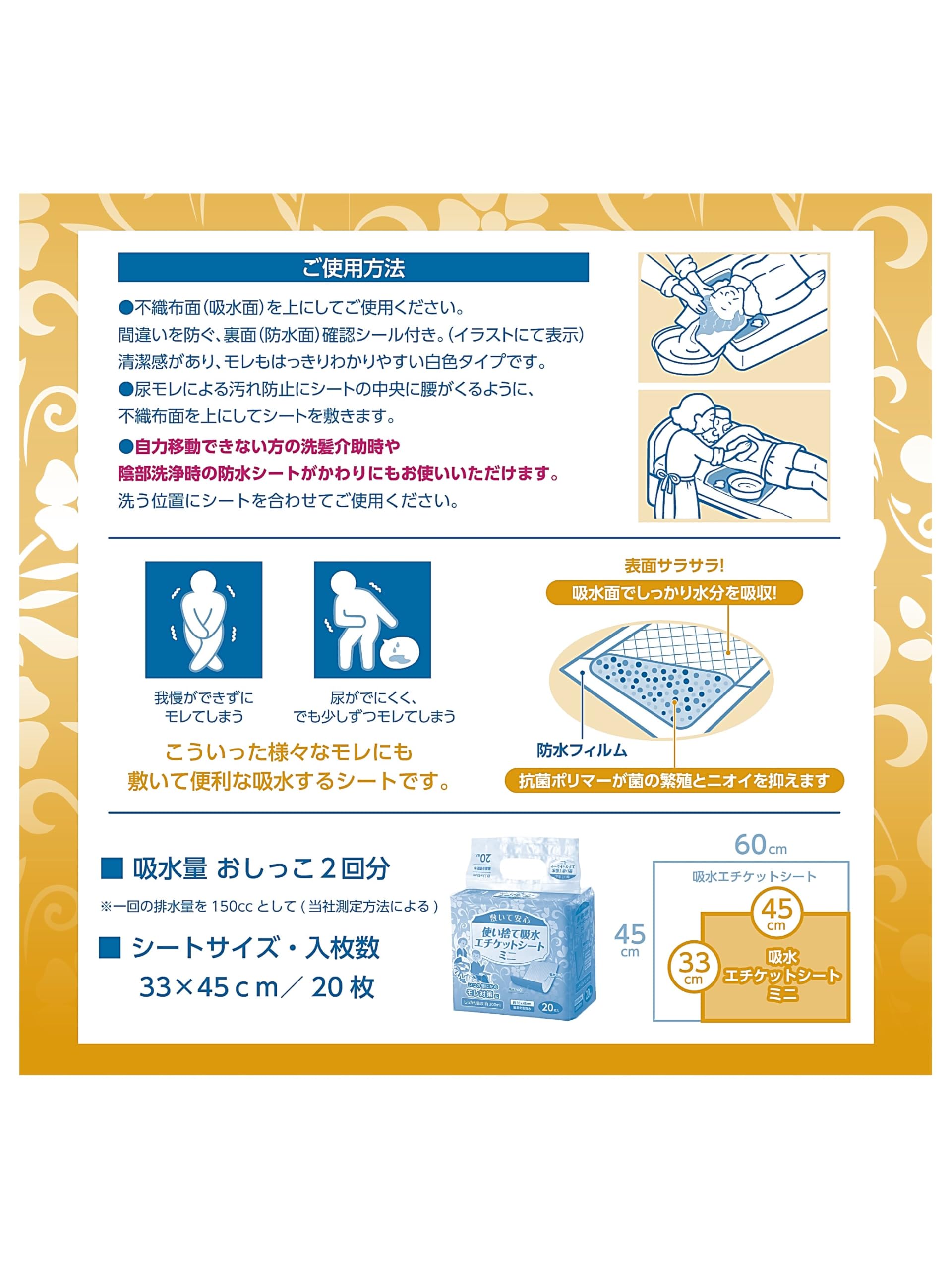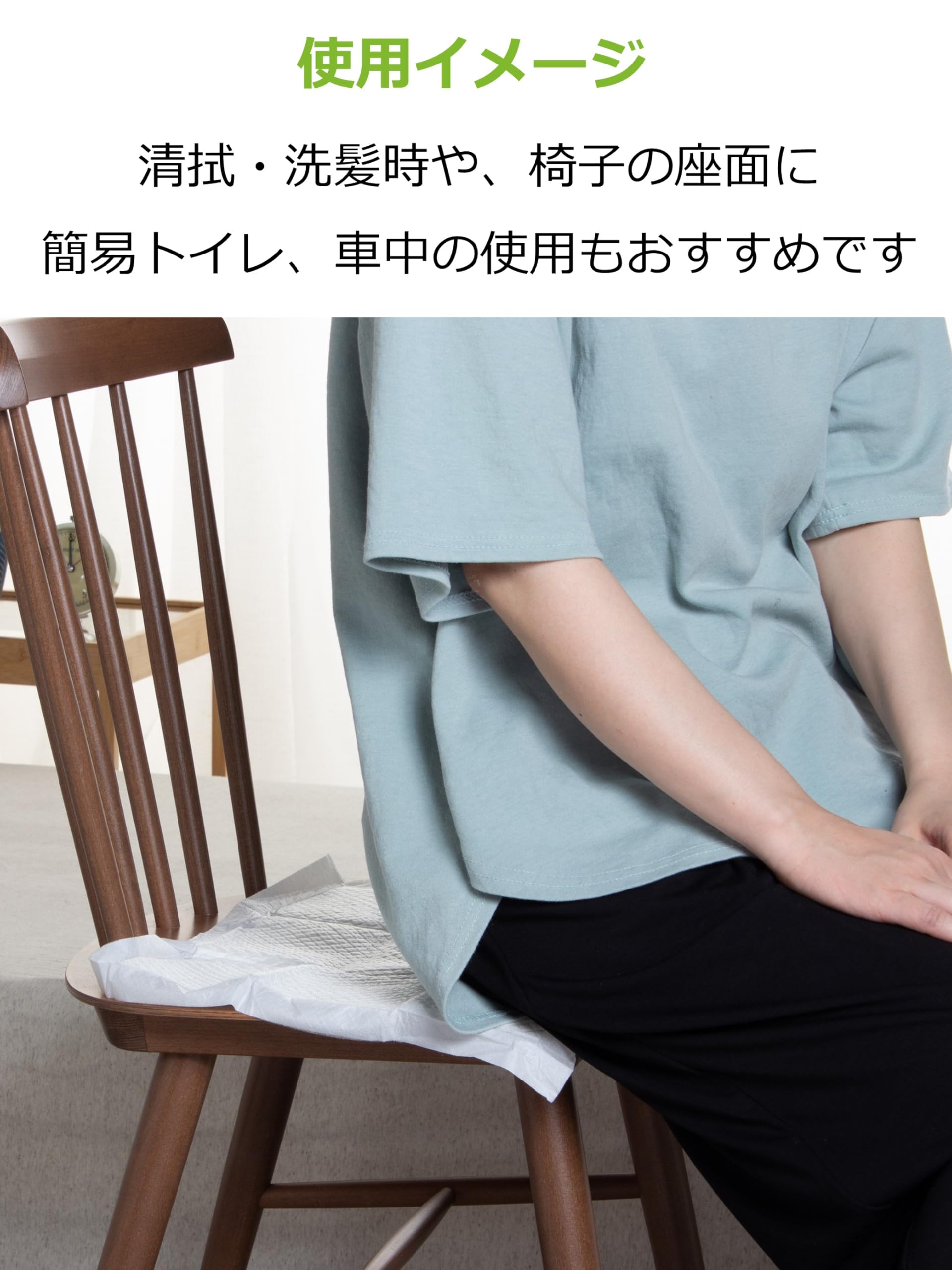 ●尿漏れで椅子などを汚さない。敷いて使用する使い捨て吸水シート。