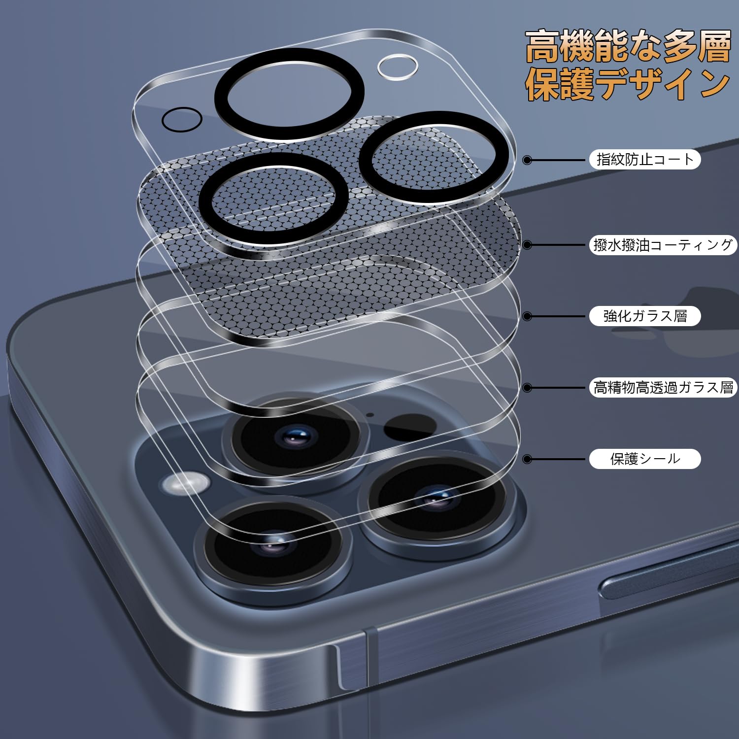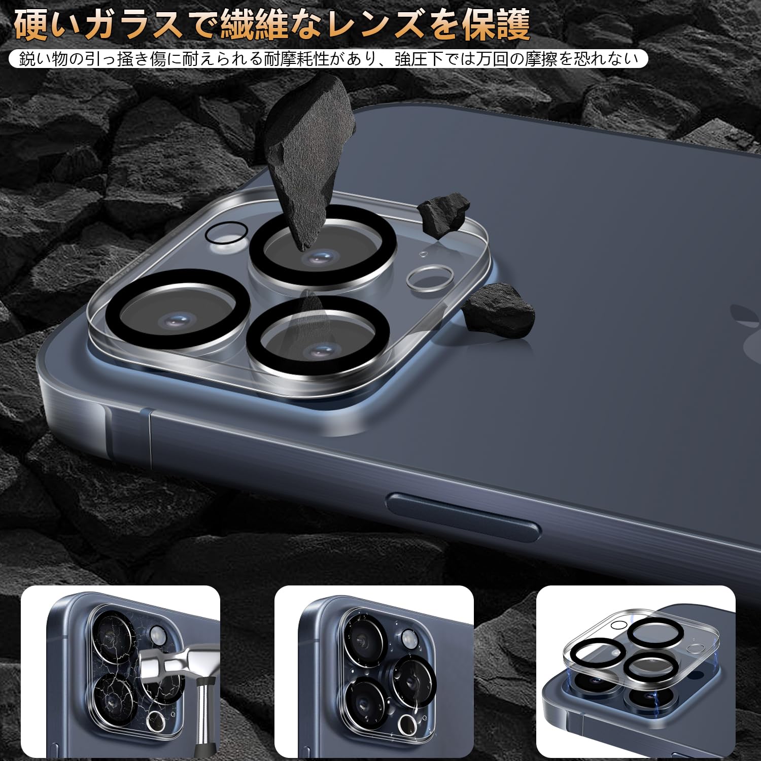 【対応機種】iPhone15 Pro/15 Pro Max 専用 カメラ 保護フィルム、全方位の保護を提供します