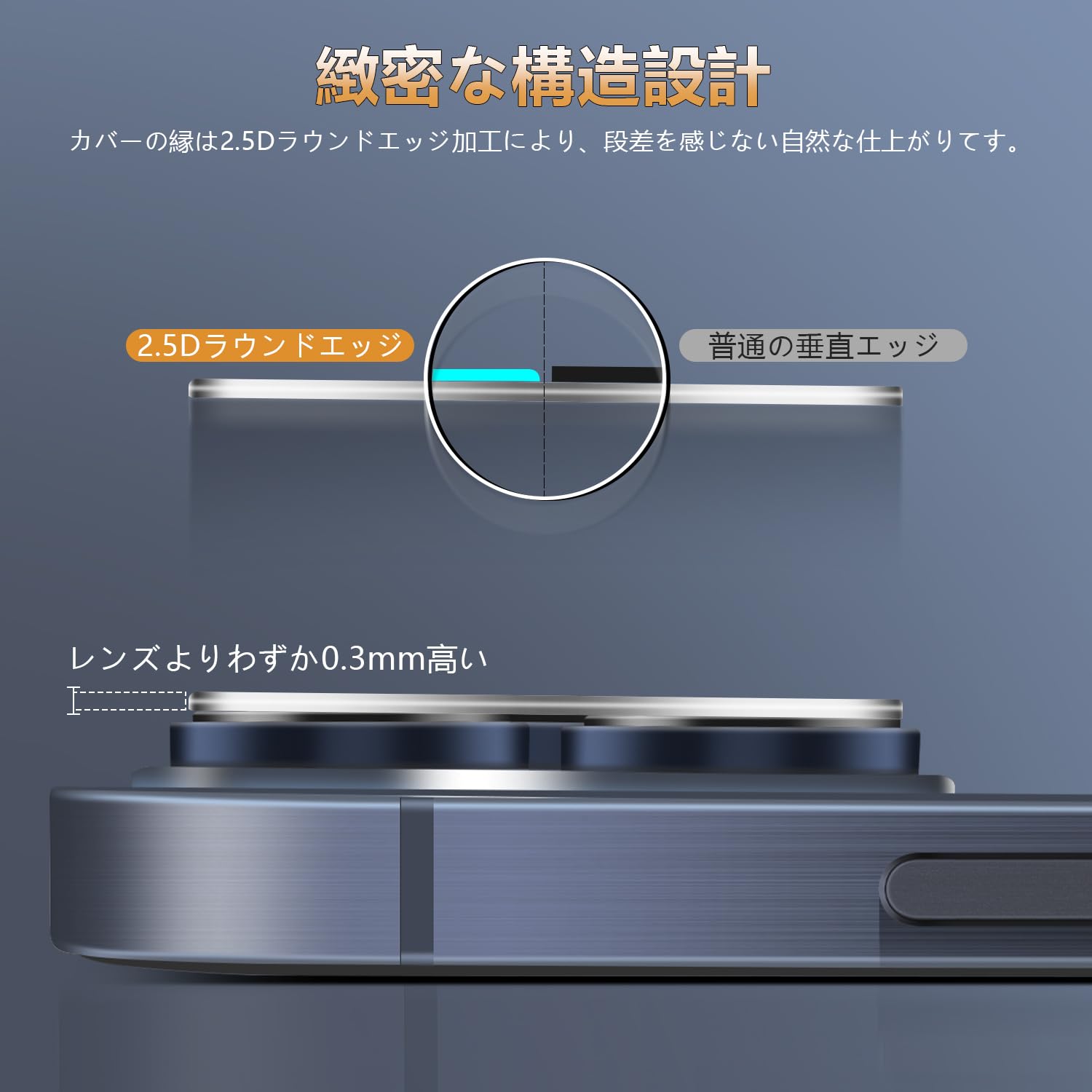 【高透過率】レンズフィルム凹面部分は超薄0.3mm 透過率99%以上の高透明度で,そのままの高画質で画面の精細さを損ないません。カメラの真の画面感を維持し、高品質の画像を鮮やかに反映します。