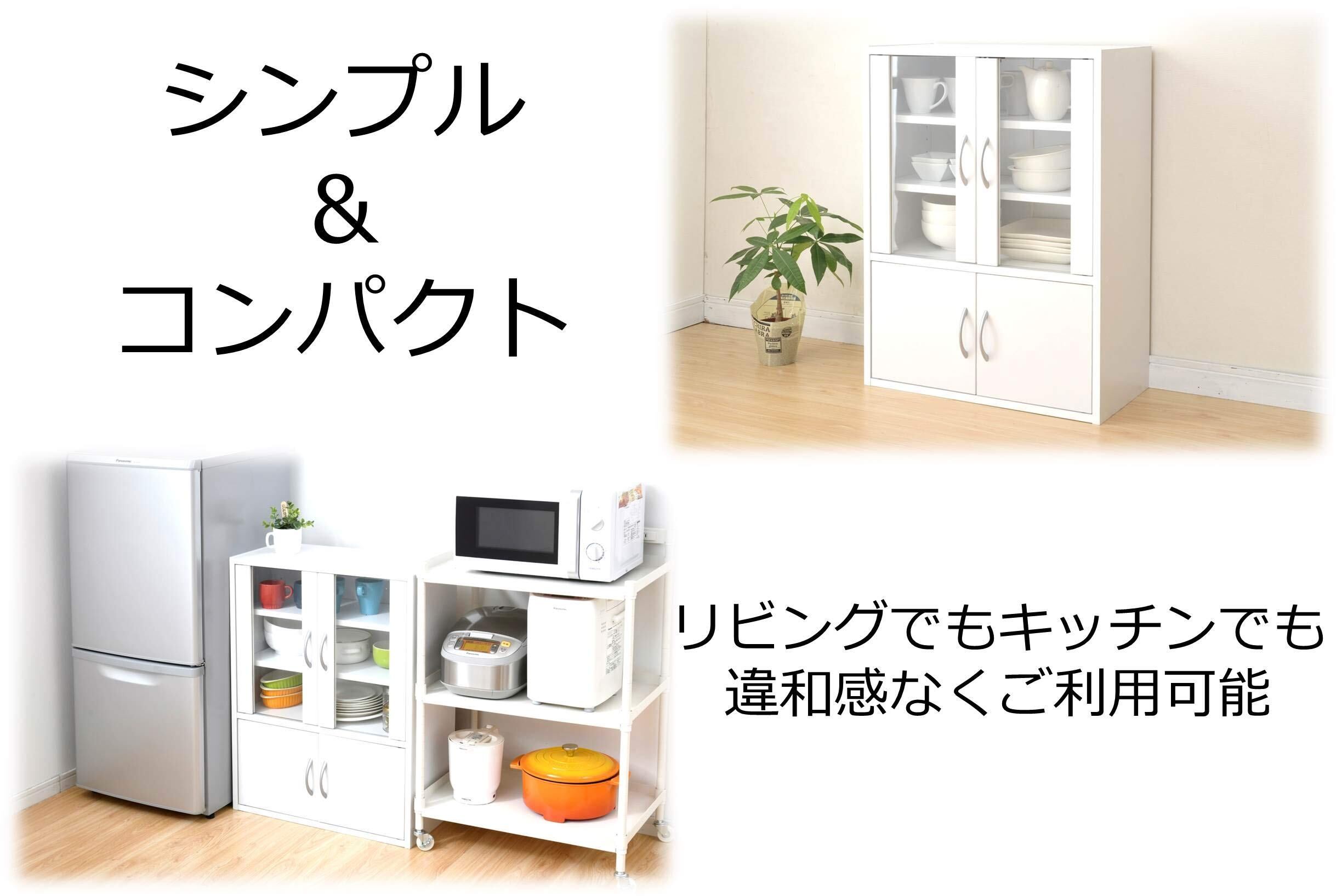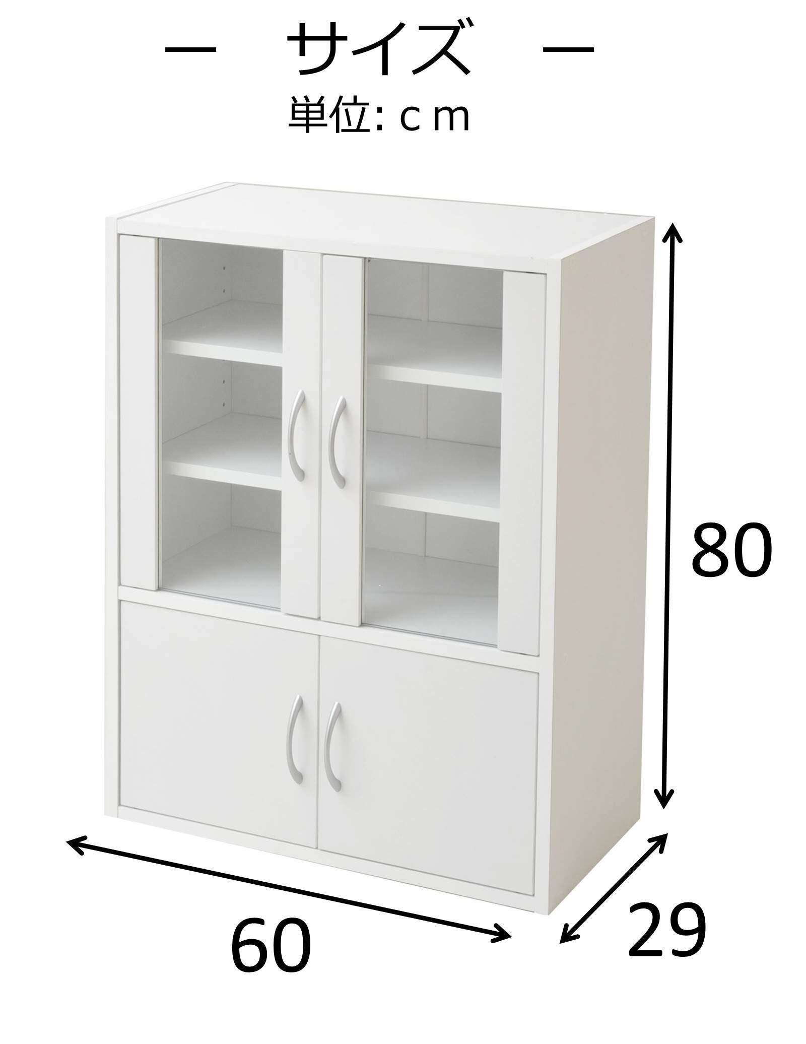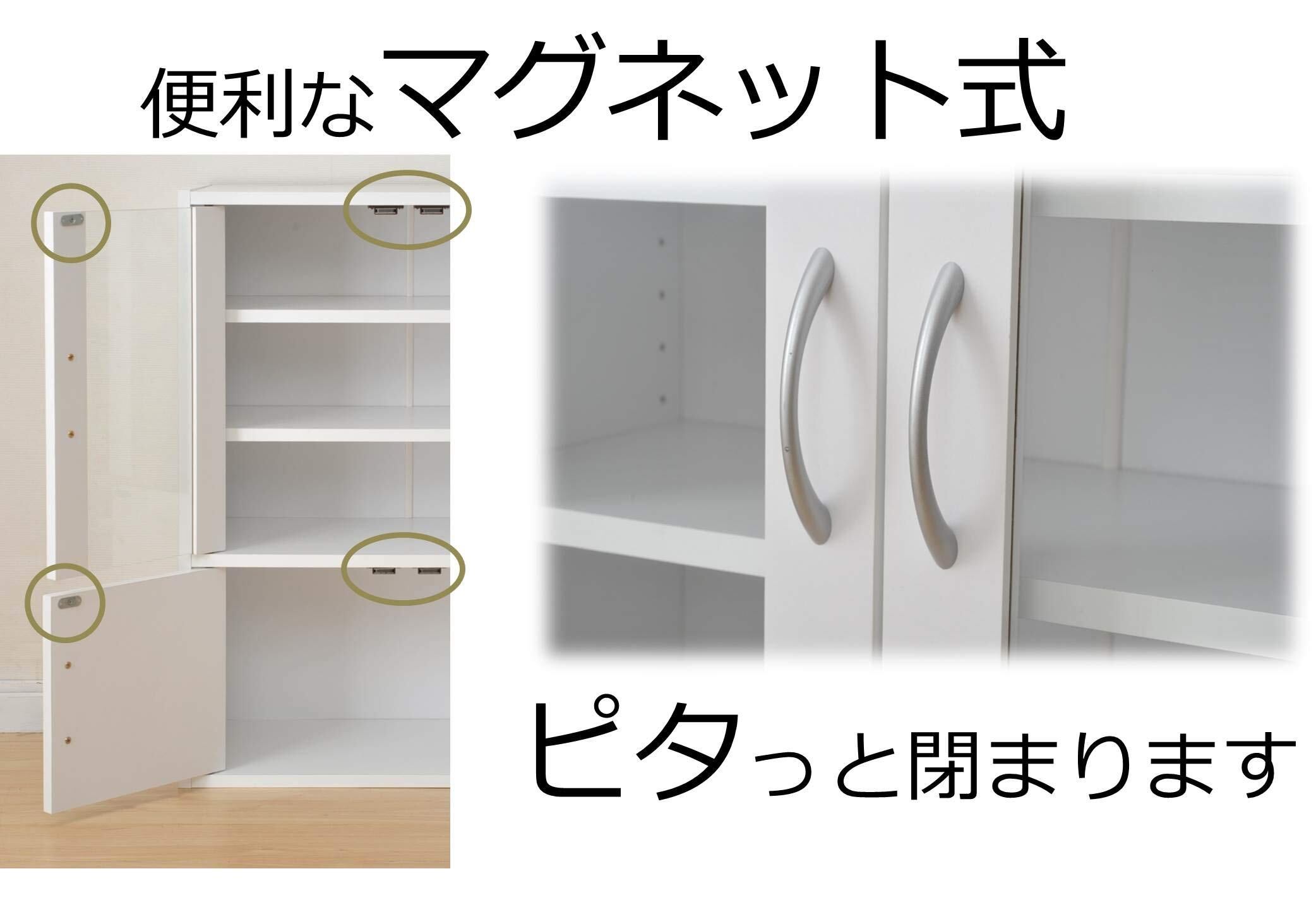 山善(YAMAZEN) 食器棚 ホワイト 幅60高さ80cm ロータイプ マグネット式 棚板可動 食器 キッチン 収納 CCB-8060(WH)