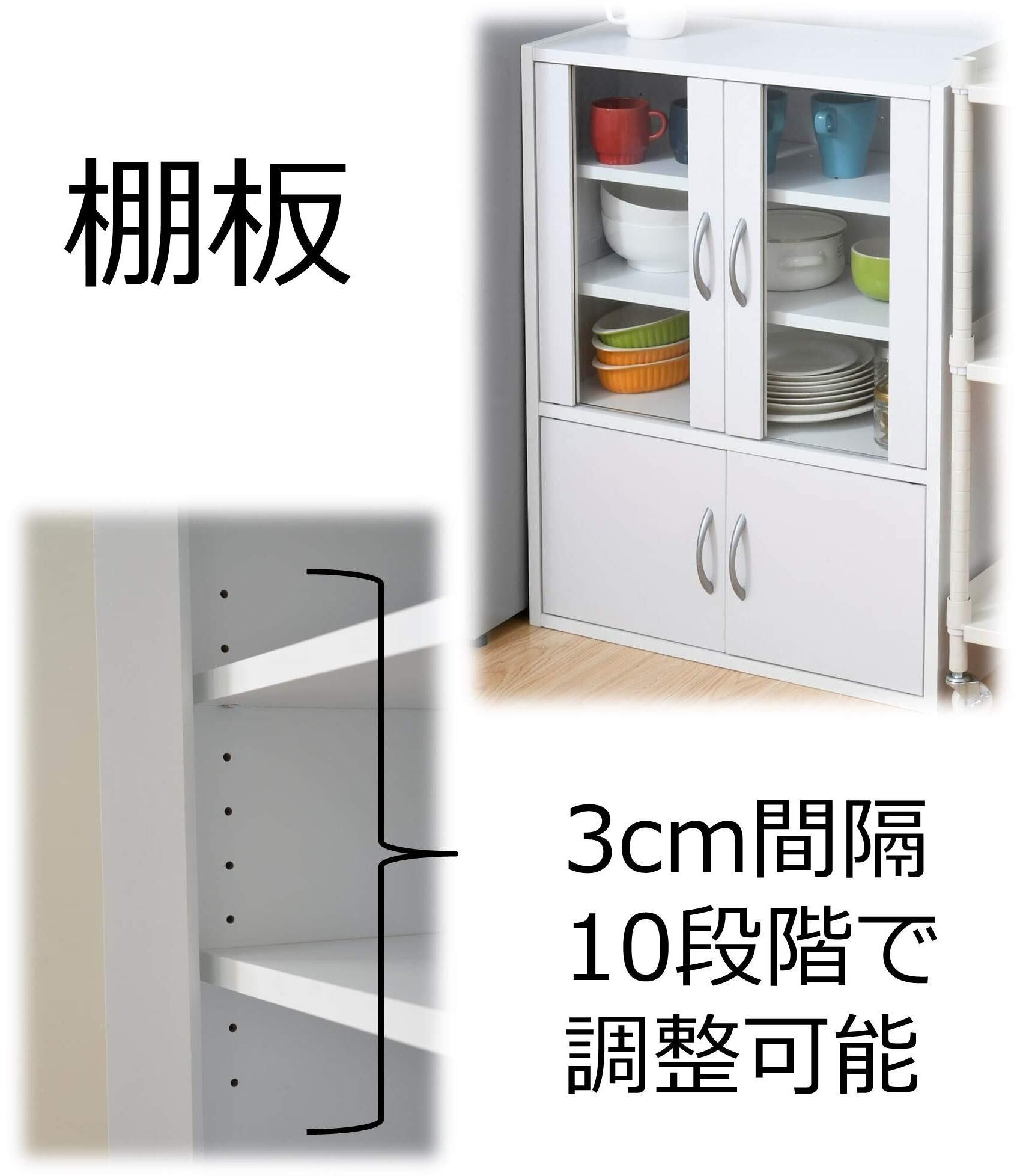 ●2枚の棚板は3cmピッチ、10段階で調整可能