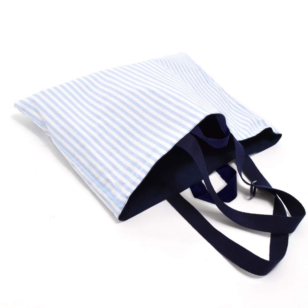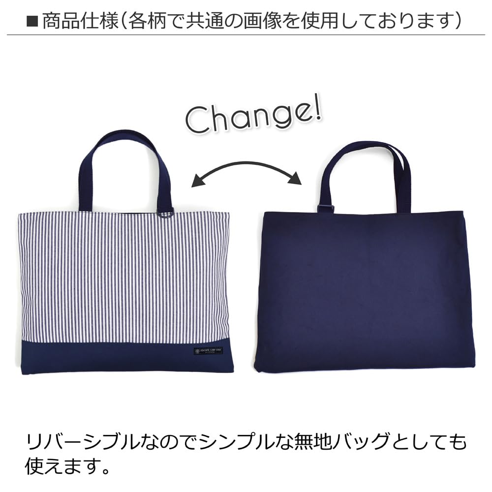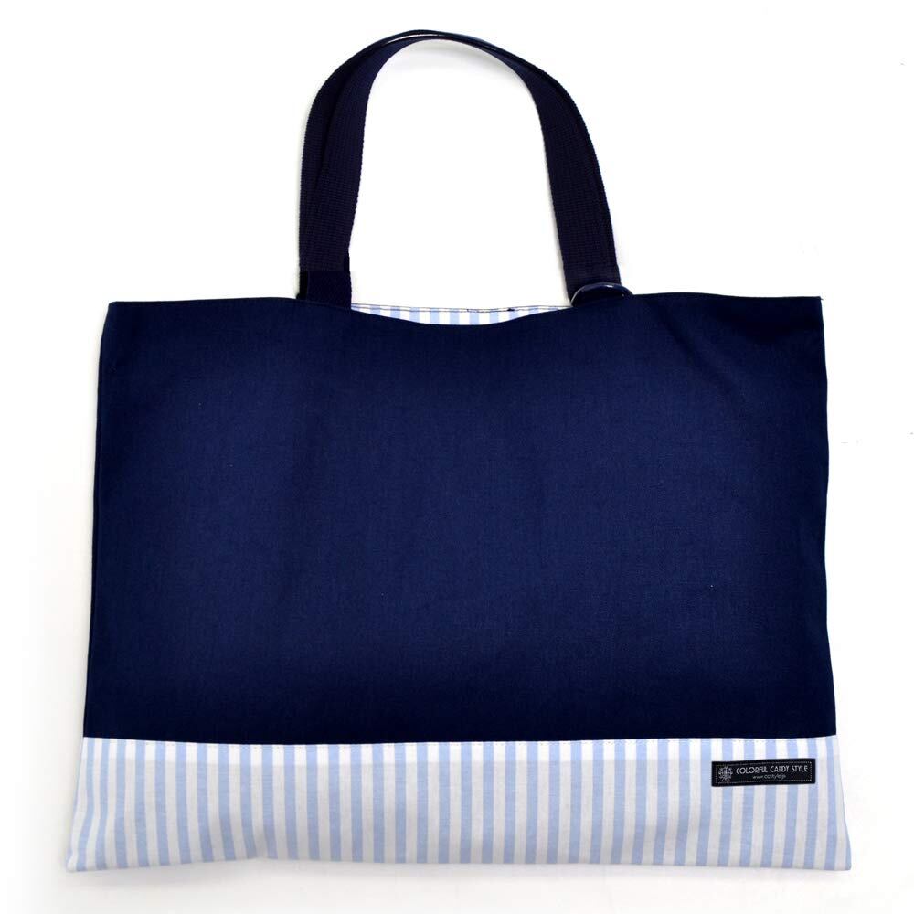 COLORFUL CANDY STYLE レッスンバッグ(リバーシブル) 絵本袋 手さげ おけいこバッグ 帆布・紺 × ベーシックストライプ・水色 N0171500