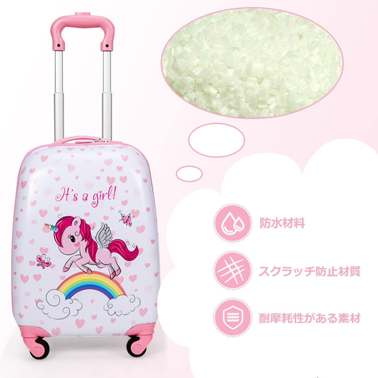 【特価】Costway スーツケース キッズキャリーケース 子供用スーツケース リュック 2点セット キャリーバッグ 機内持込み 誕生日プレゼント 入園プレゼント (ピンク-ユニコーン) | GIGATERA