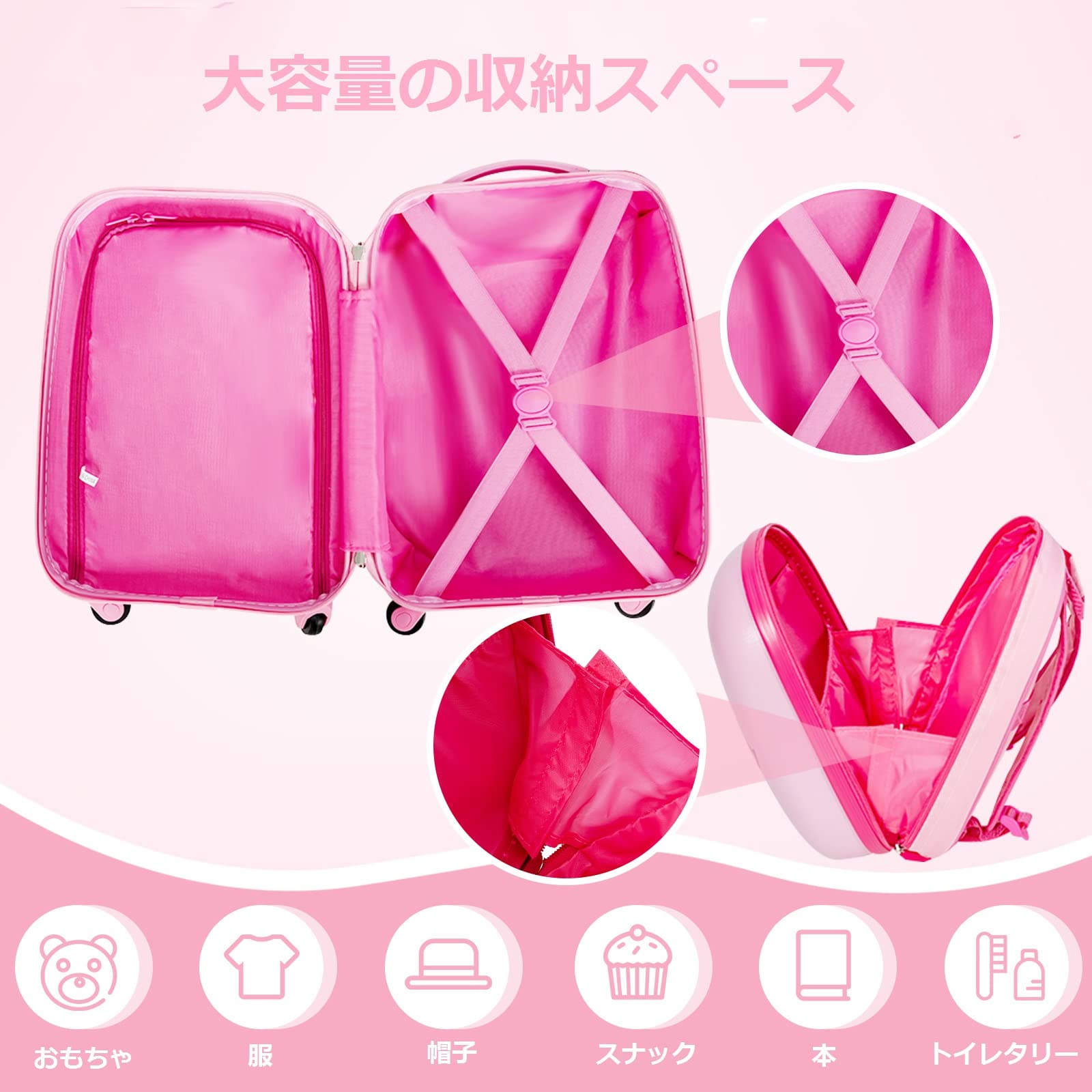 【軽便&ポータブル】このスーツケースは4つのユニバーサルホイールを備えています。その車輪は静かに360度回転できます。また、このスーツケースは子供たちにとって軽いです。そして、そのリュックサックはトランクの上に置いて、スペースを節約できます。