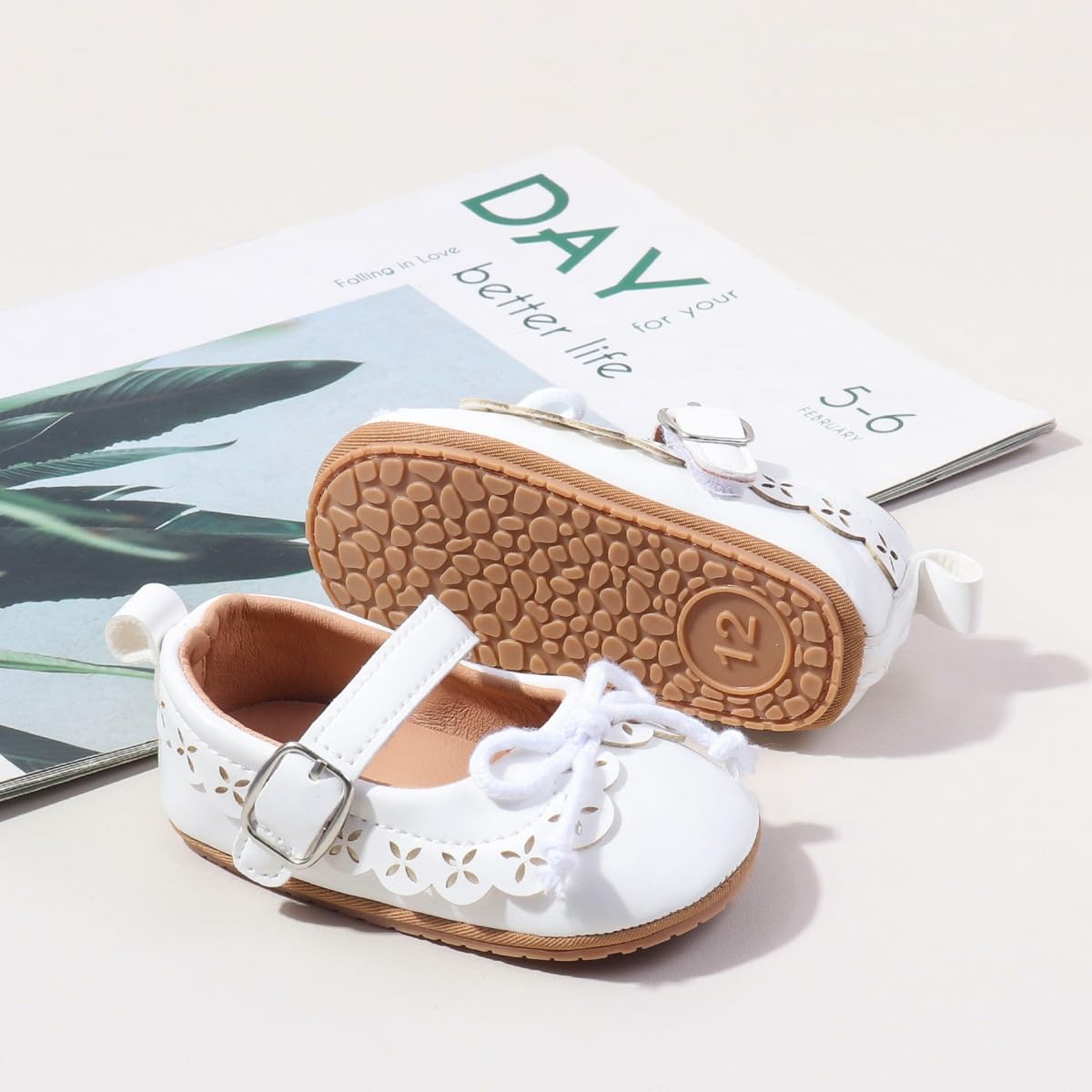 [VNGOLERRY] ベビーシューズ 赤ちゃん 靴 ファーストシューズ 女の子 ルームシューズ ドレスシューズ プリンセス ベビー靴 幼児 歩行練習 リボン 軽量 滑り止め 出産祝い フォーマル 可愛い 結婚式 白 11cm 12cm 13cm