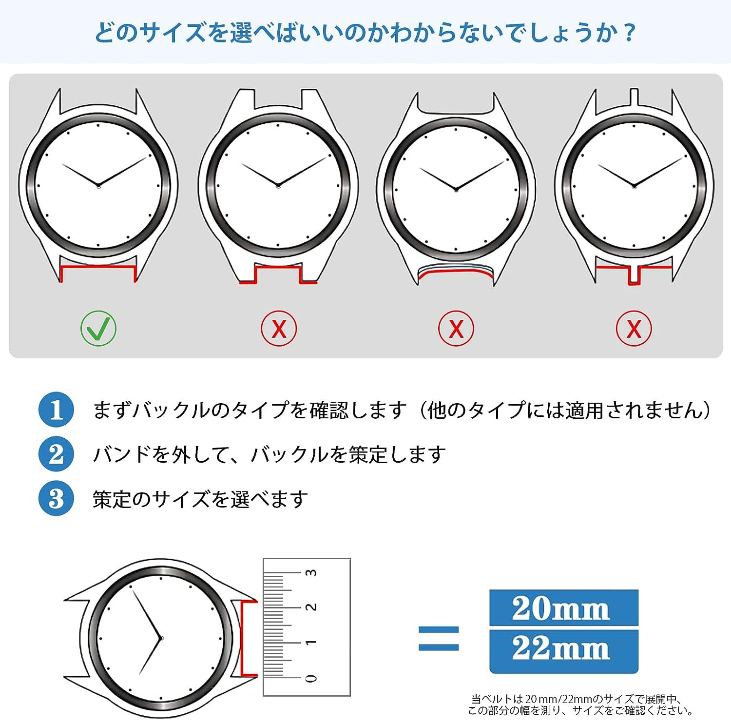【対応モデル】:この時計バンドは幅20mm/22mmのバンドです、市販品のほとんどは全てのラグ幅が20mm/22mmのスマートウォッチやカジュアル腕時計に交換性があります。購入する前に必ず時計のラグ幅をご確認ください。手首のサイズ「130-220mm」に適しています。