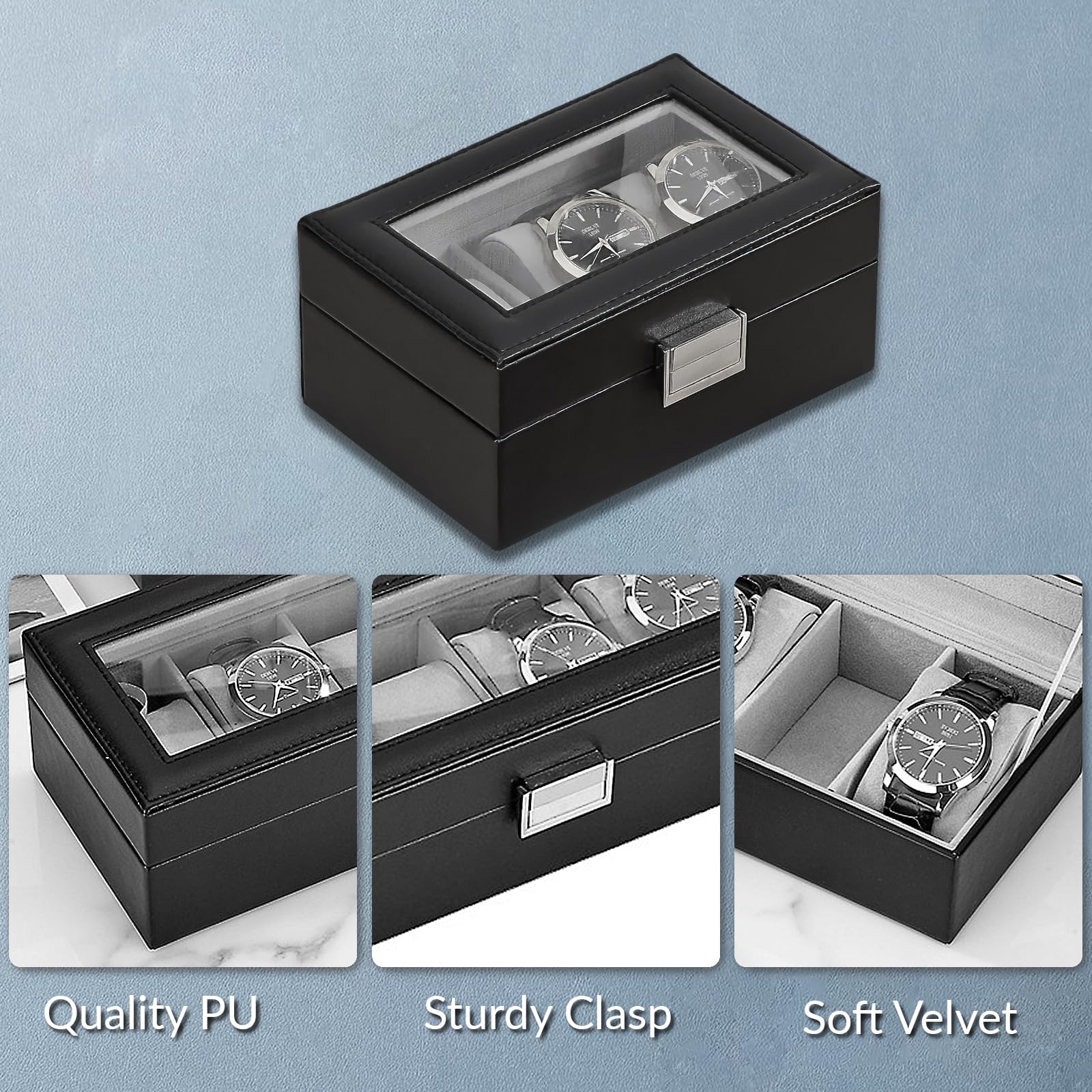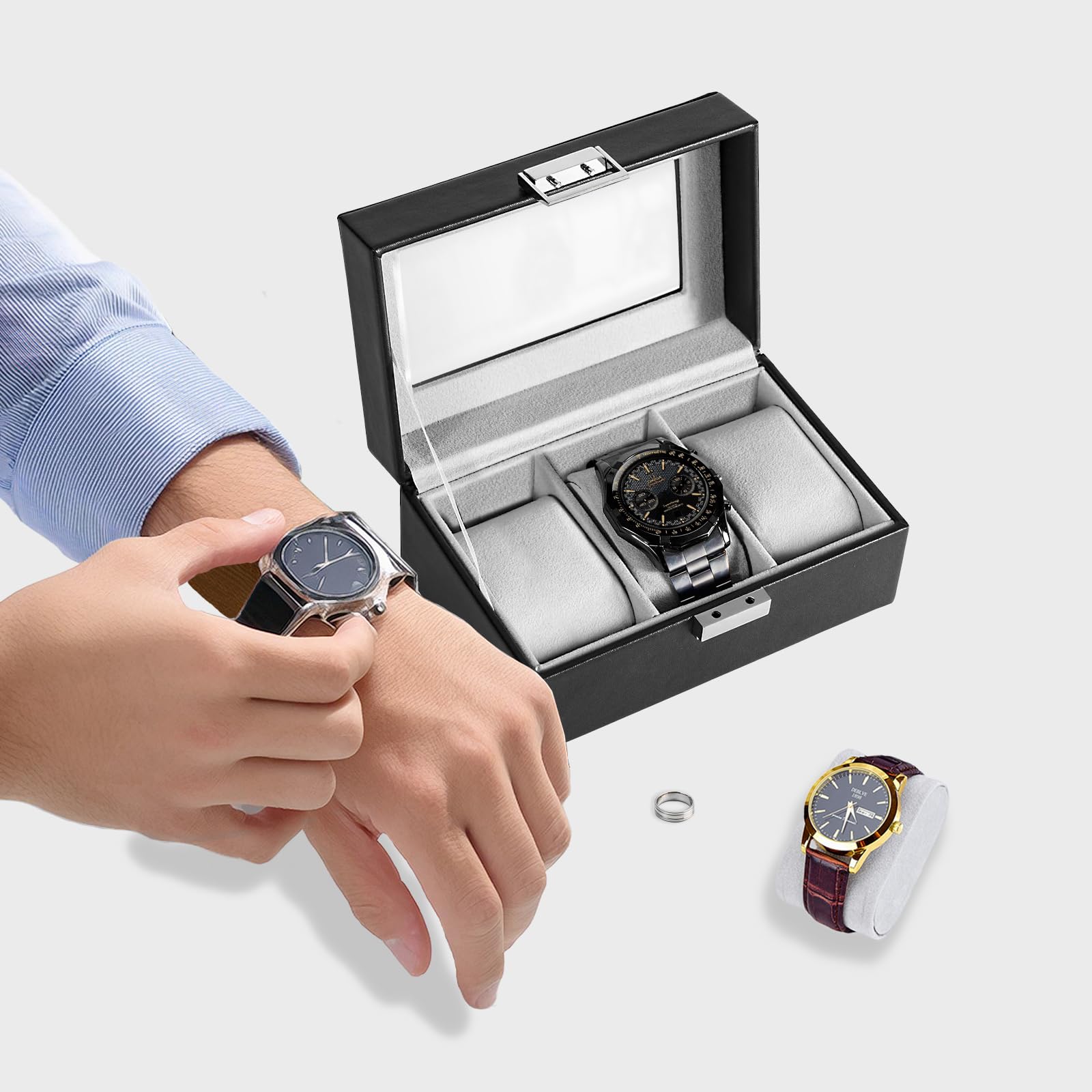 【特価】腕時計ケース 3本用 ウオッチボックス 男性 高級 時計コレクション 透明ガラス天板 ディスプレイ プレゼント
