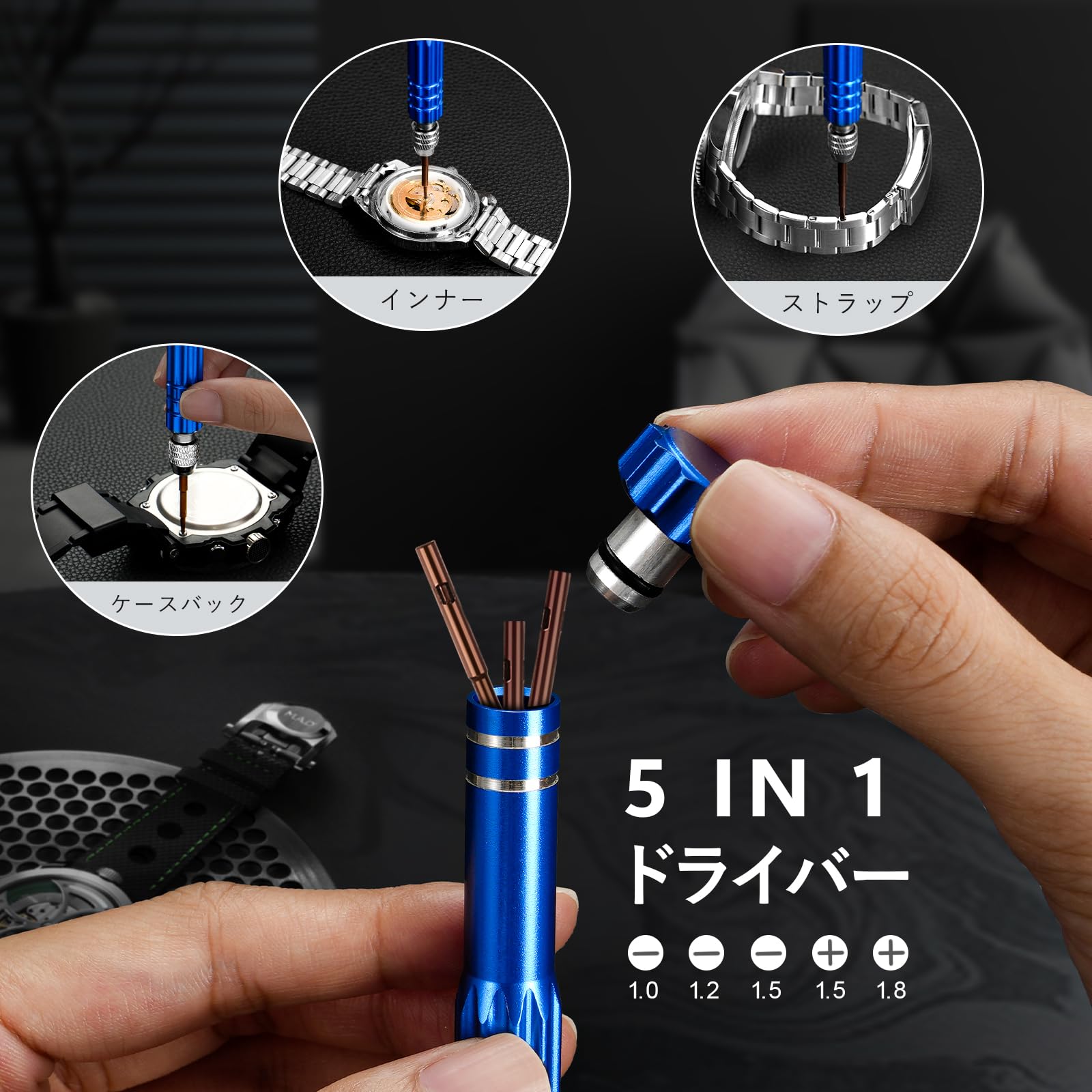 JOREST腕時計修理工具セット+裏蓋閉め器、電池交換工具、こじ開け時計オープナー、時計ベルト調整、時計バンド交換工具、時計こうぐ、時計キット、時計でんち交換工具、バネ棒外し、取扱説明書(英語版)