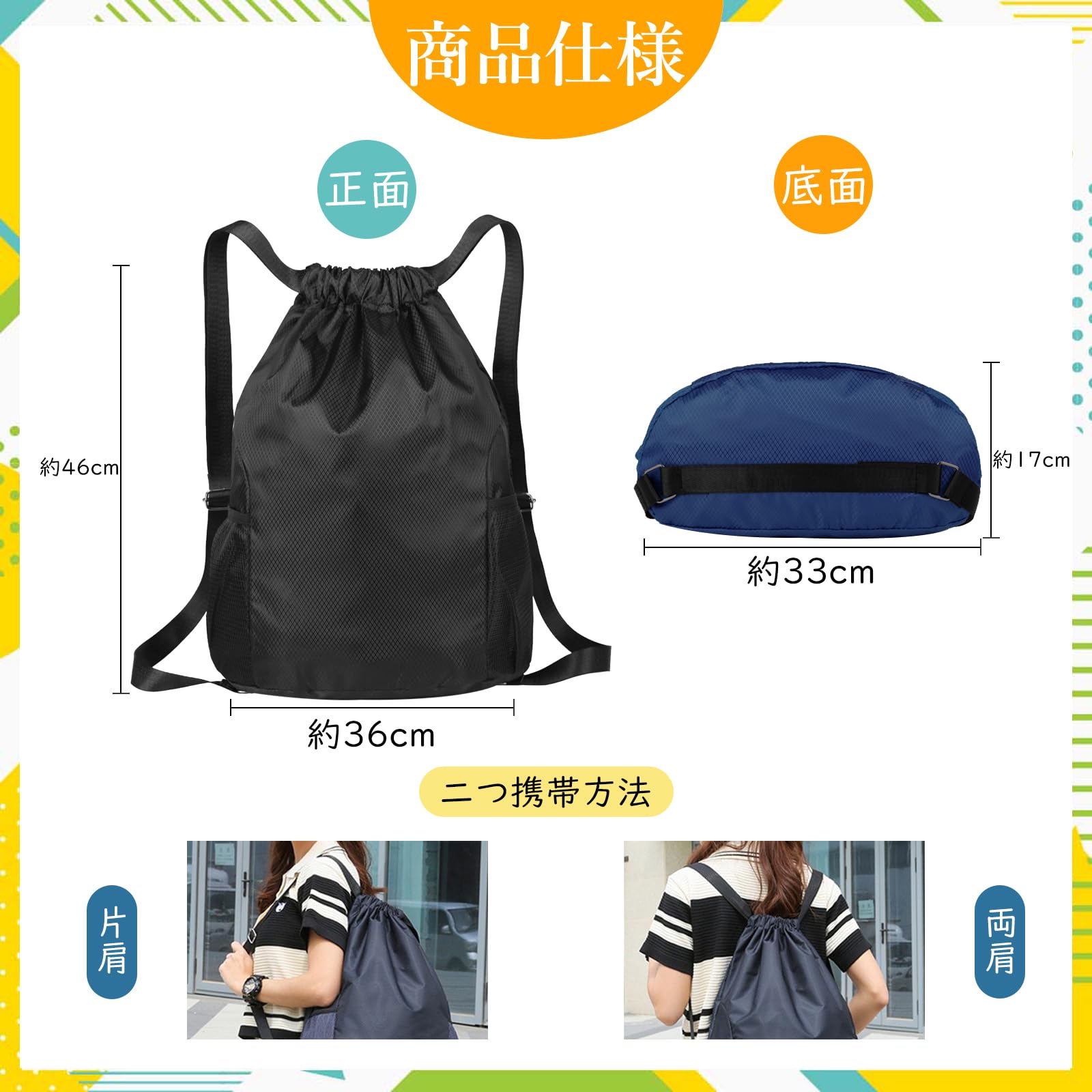 [Mesanda] ジムサック ナップサック リュック プールバッグ 防水 軽量 折り畳み 巾着袋 旅行 運動 水泳 多機能 乾湿分離 シューズ収納 エコバッグ スポーツバッグ 大容量 男女兼用
