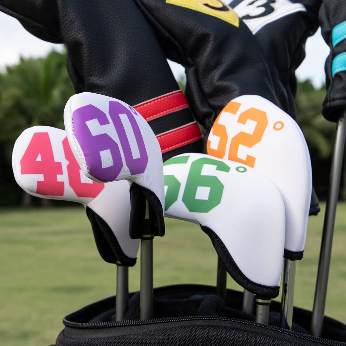 ?シルク印刷でカラフル番手を付けました、欲しい番手が直ぐに手に入れられます。番手付きのアイアンカバーはクラブ紛失にも防止できます。