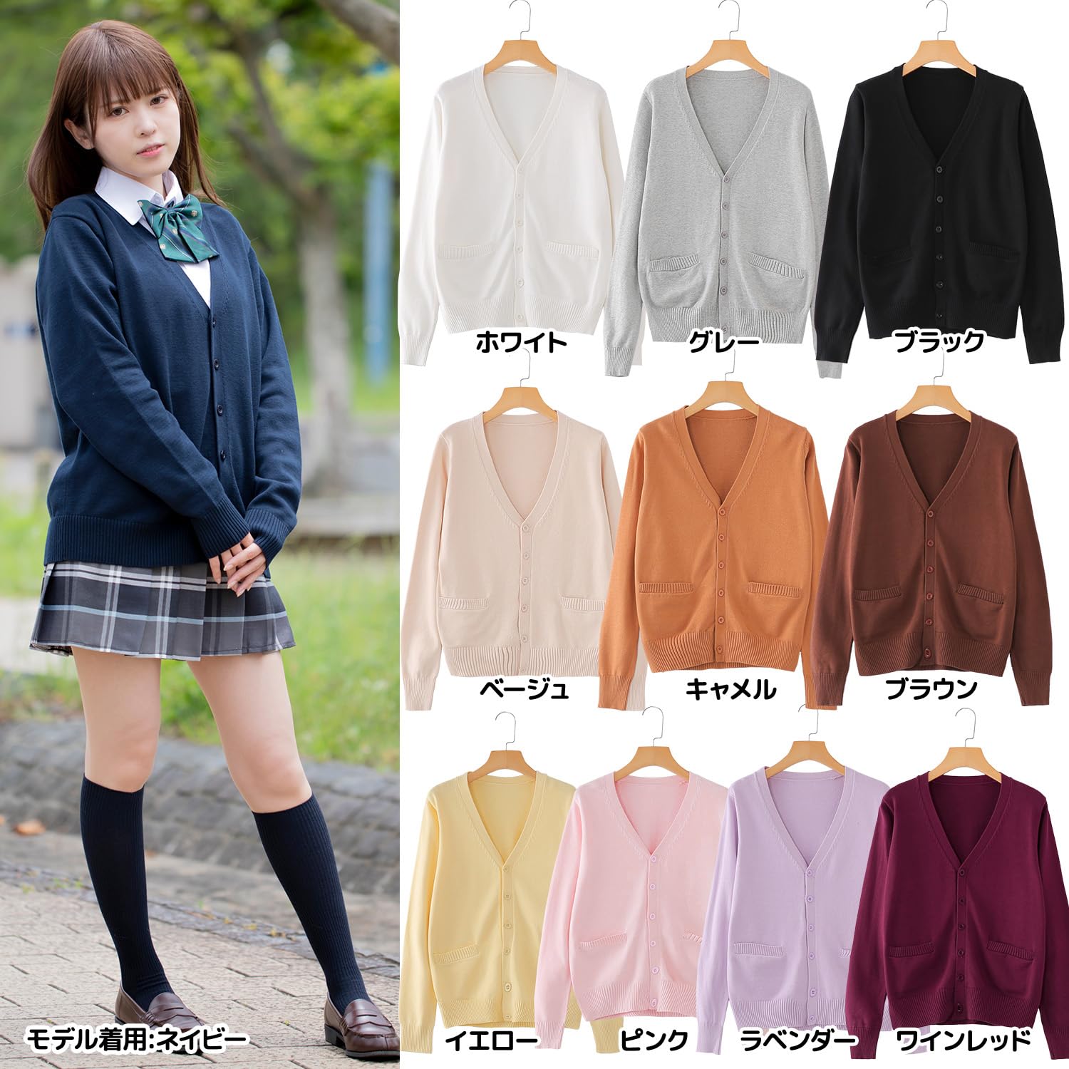 [クラッセ] スクール ニット カーディガン ベスト セーター 学生 制服 春夏 秋冬 通年 通学 無地 Vネック
