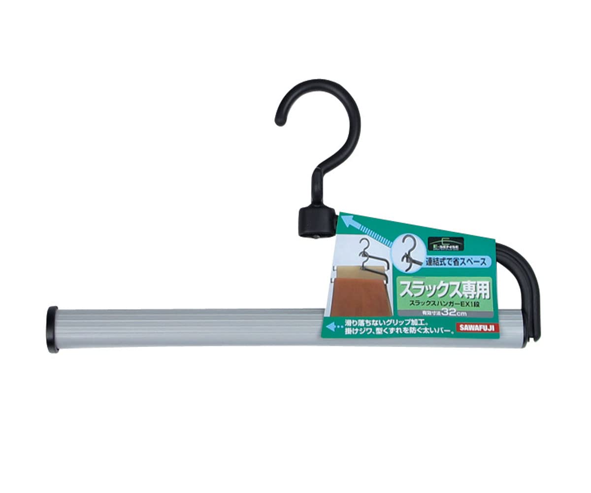 【特価在庫】サワフジ 洋服ハンガー E-SENSE スラックスハンガーEX1段 ブラック 幅343mm 日本製 クローゼット 吊るせる ズボン パンツ ジーンズ 極太バー 折りジワ 型くずれ防止 すべりにくい 連結 省スペース SLEX-01