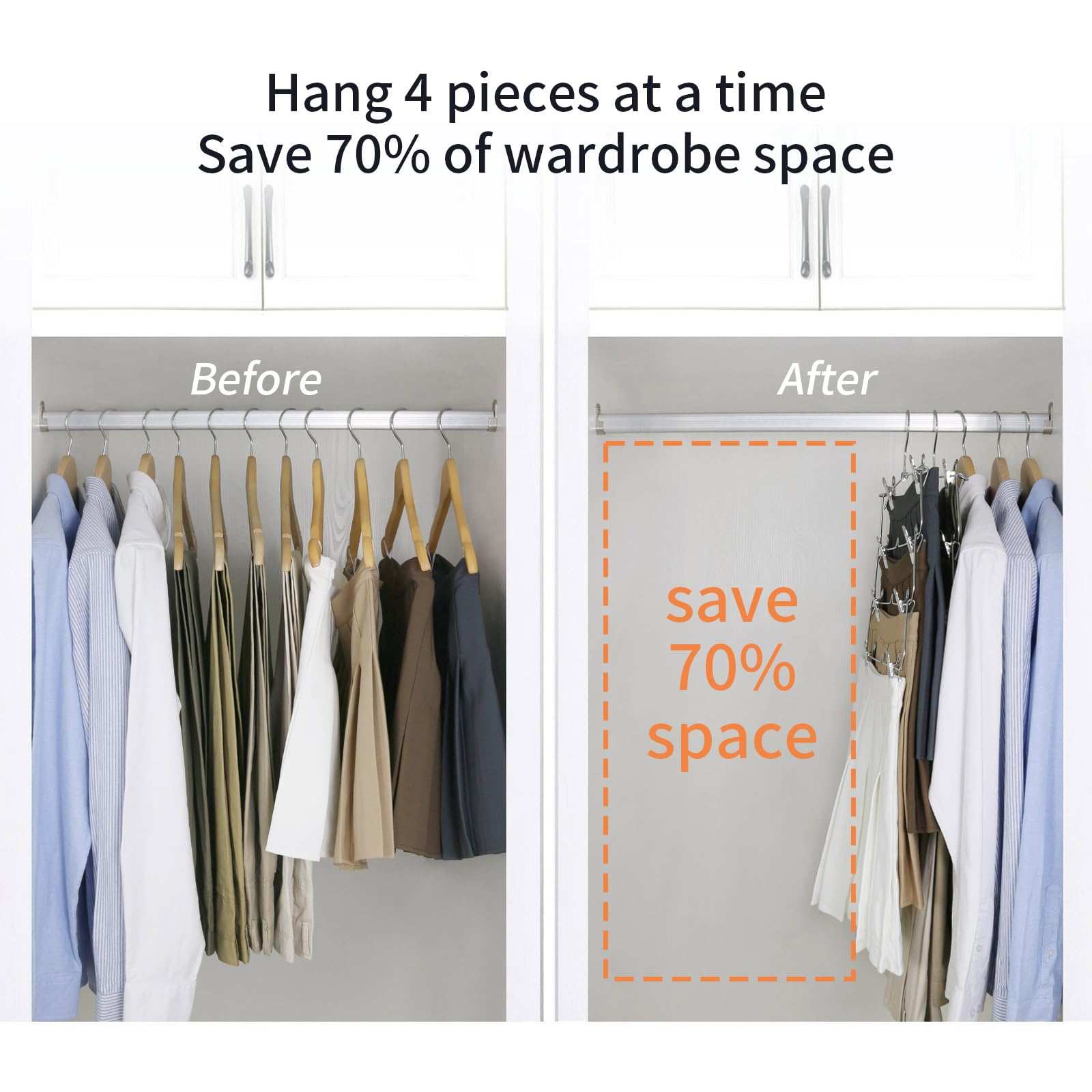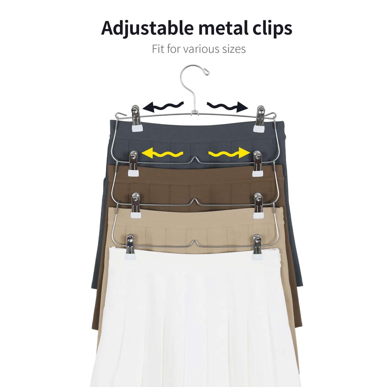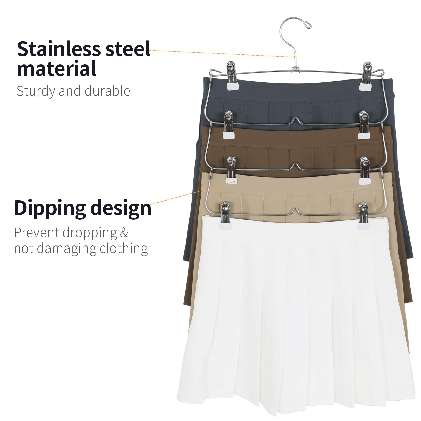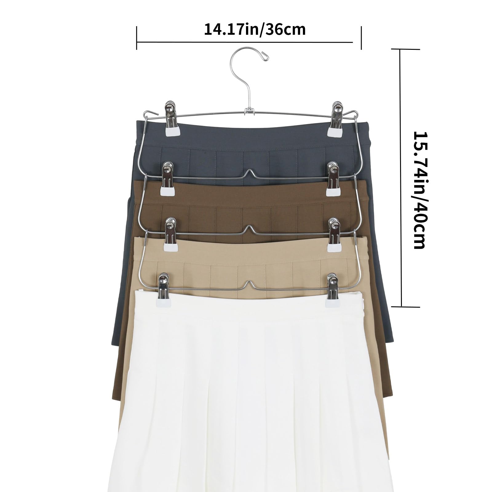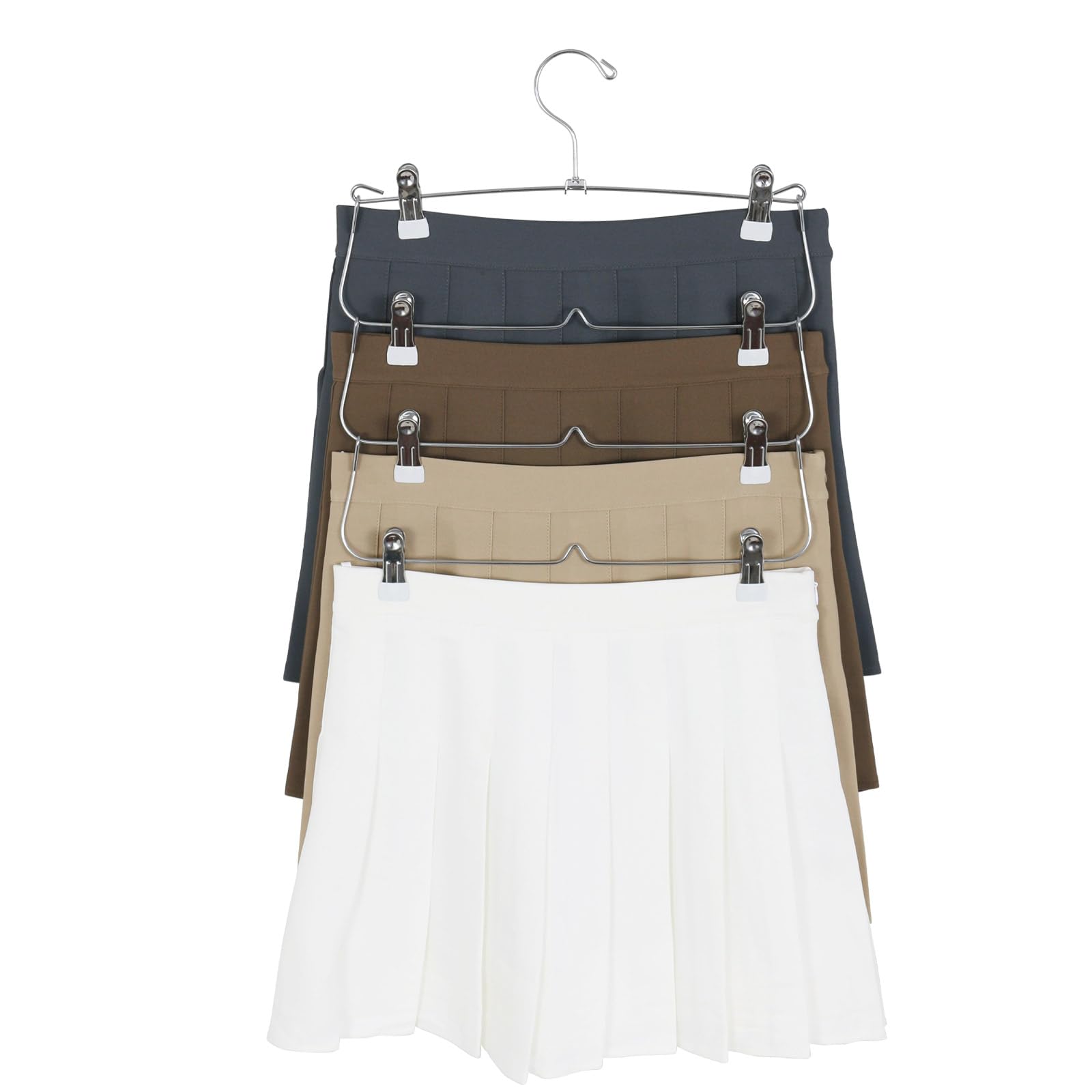 多段設計:4段構造により、一つのハンガーで複数のスカートを収納可能。クローゼット内のスペースを有効に活用できます。
