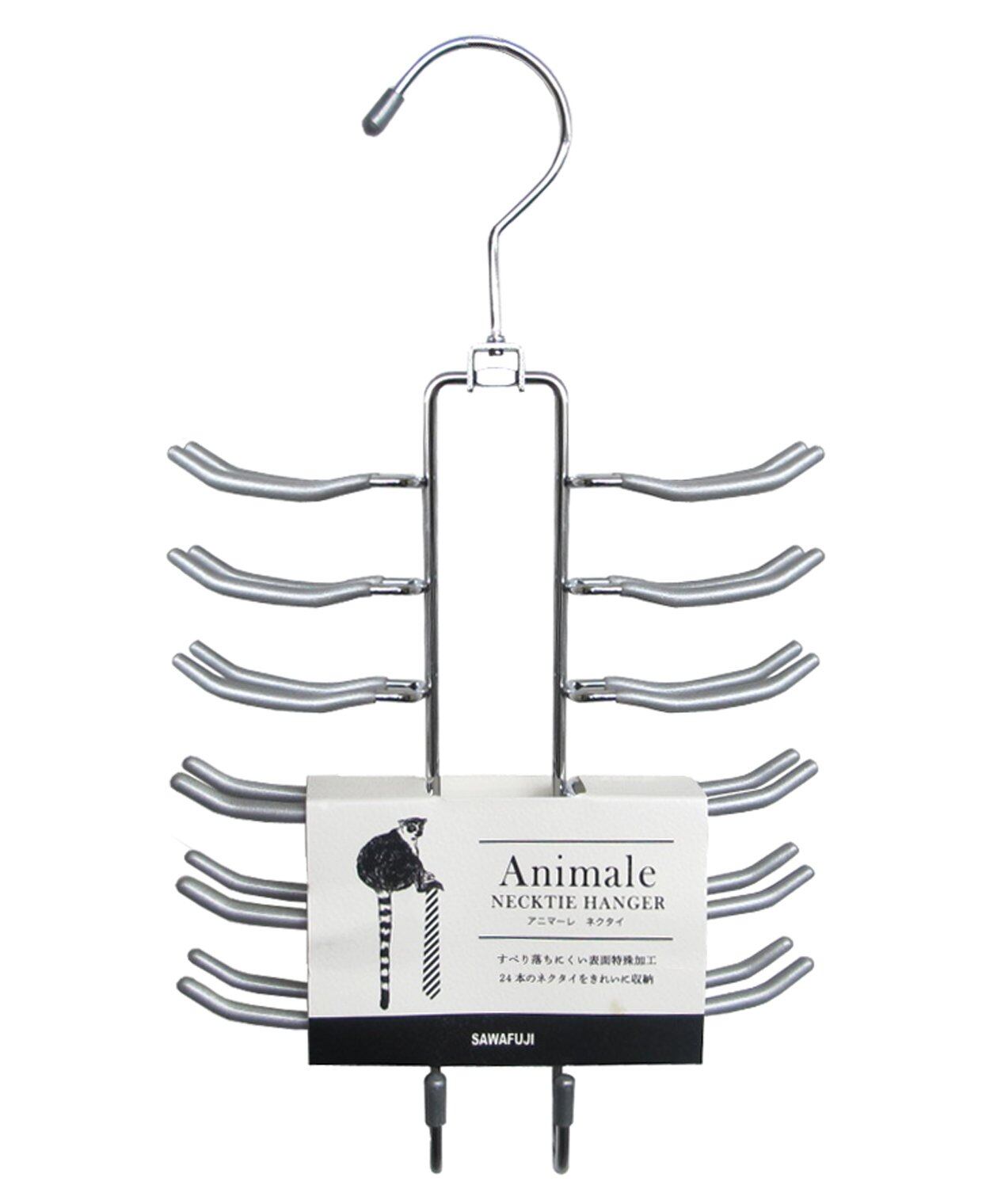 サワフジ ネクタイハンガー アニマーレネクタイハンガー シルバー 24本掛け 省スペース 滑らない 部屋 室内 干し おしゃれ 収納 多機能 跡がつかない クローゼット AN-04