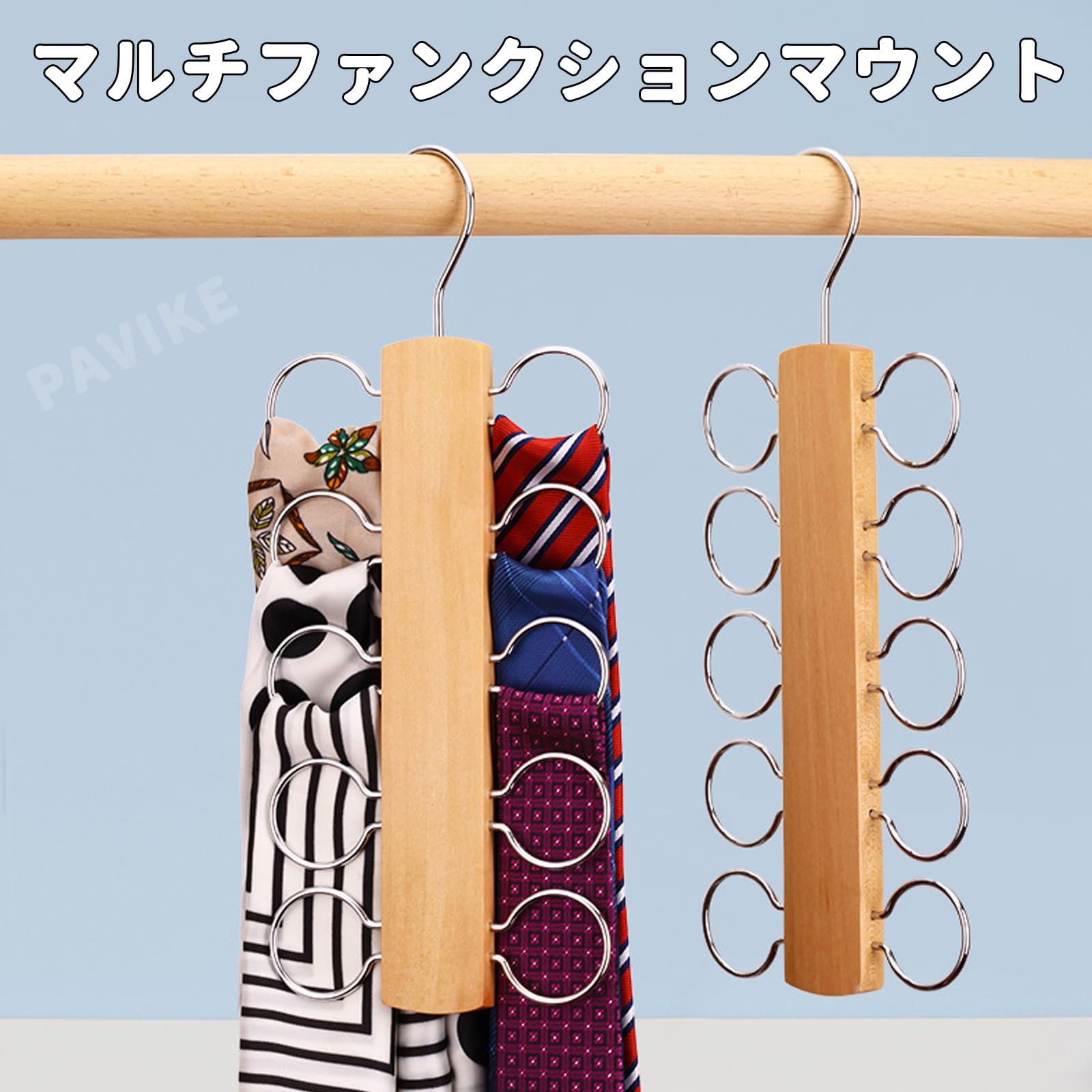 ネクタイ収納ハンガー 10丸型フック ベルト オーガナイザー マルチフック 360度回転スカーフハンガー 省スペースオーガナイザー省スペース 省スペース 10 個のフック付き木製ネクタイとベルトハンガー 多機能収納 (ライトカレー)