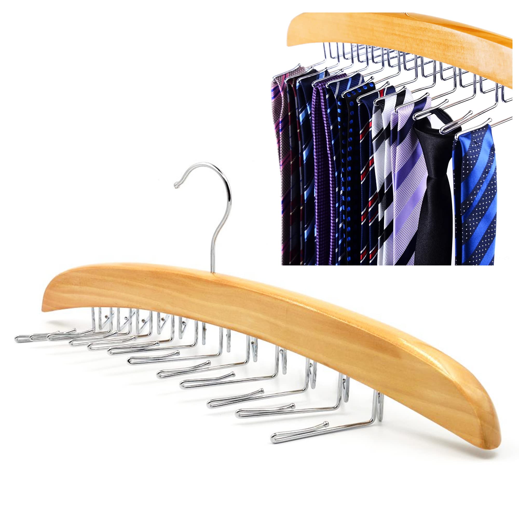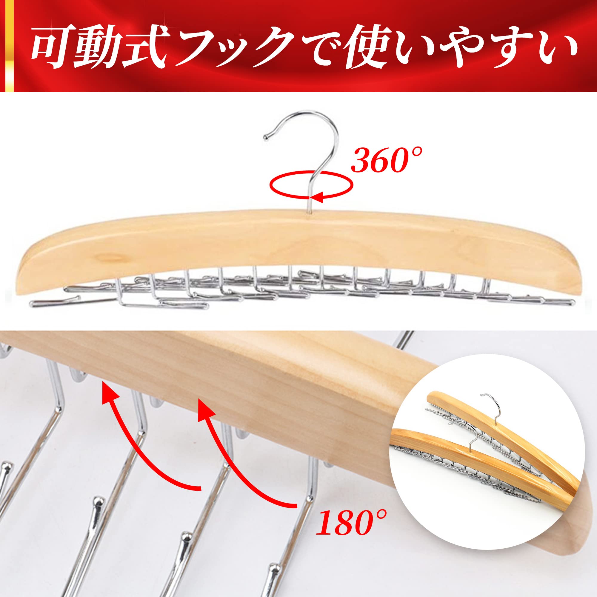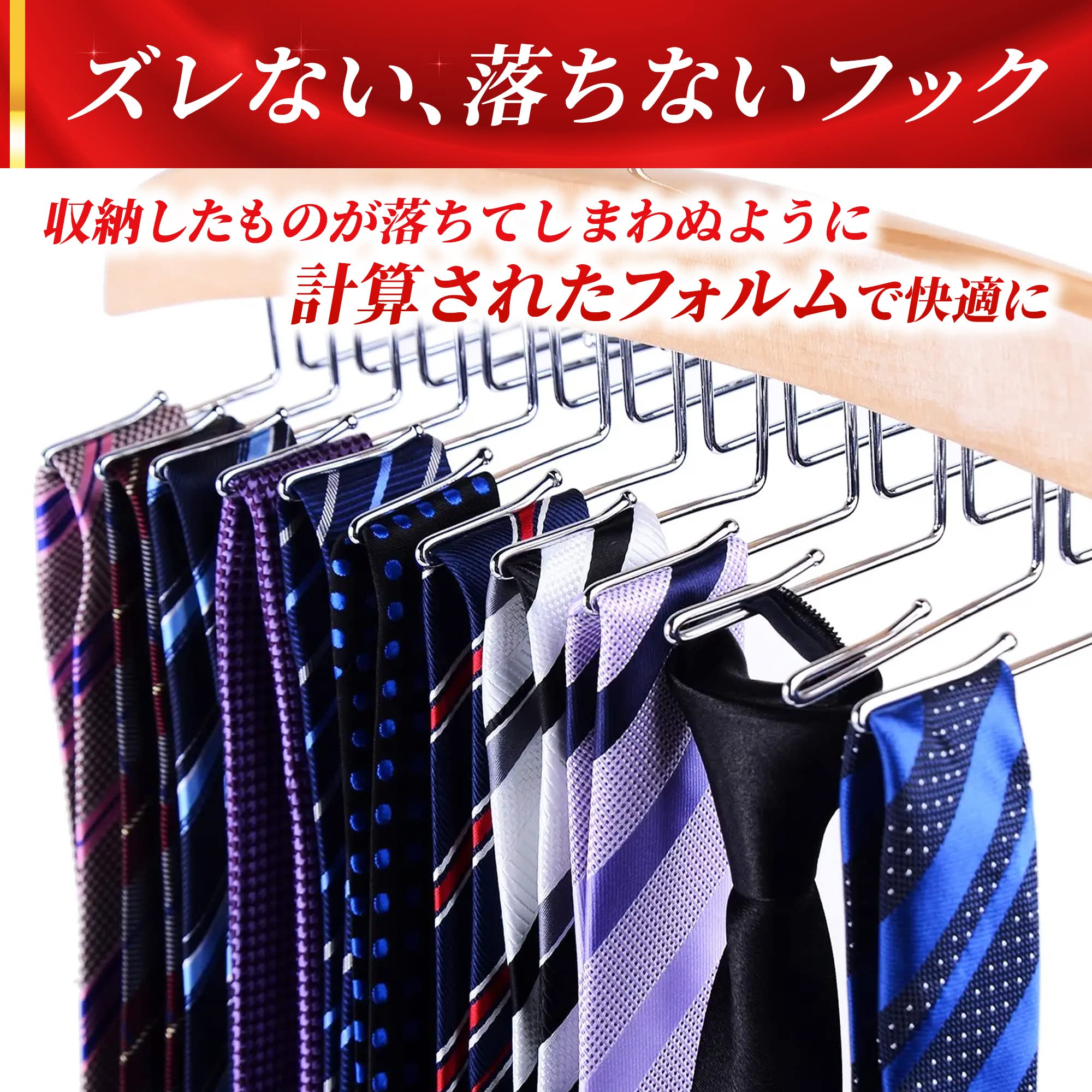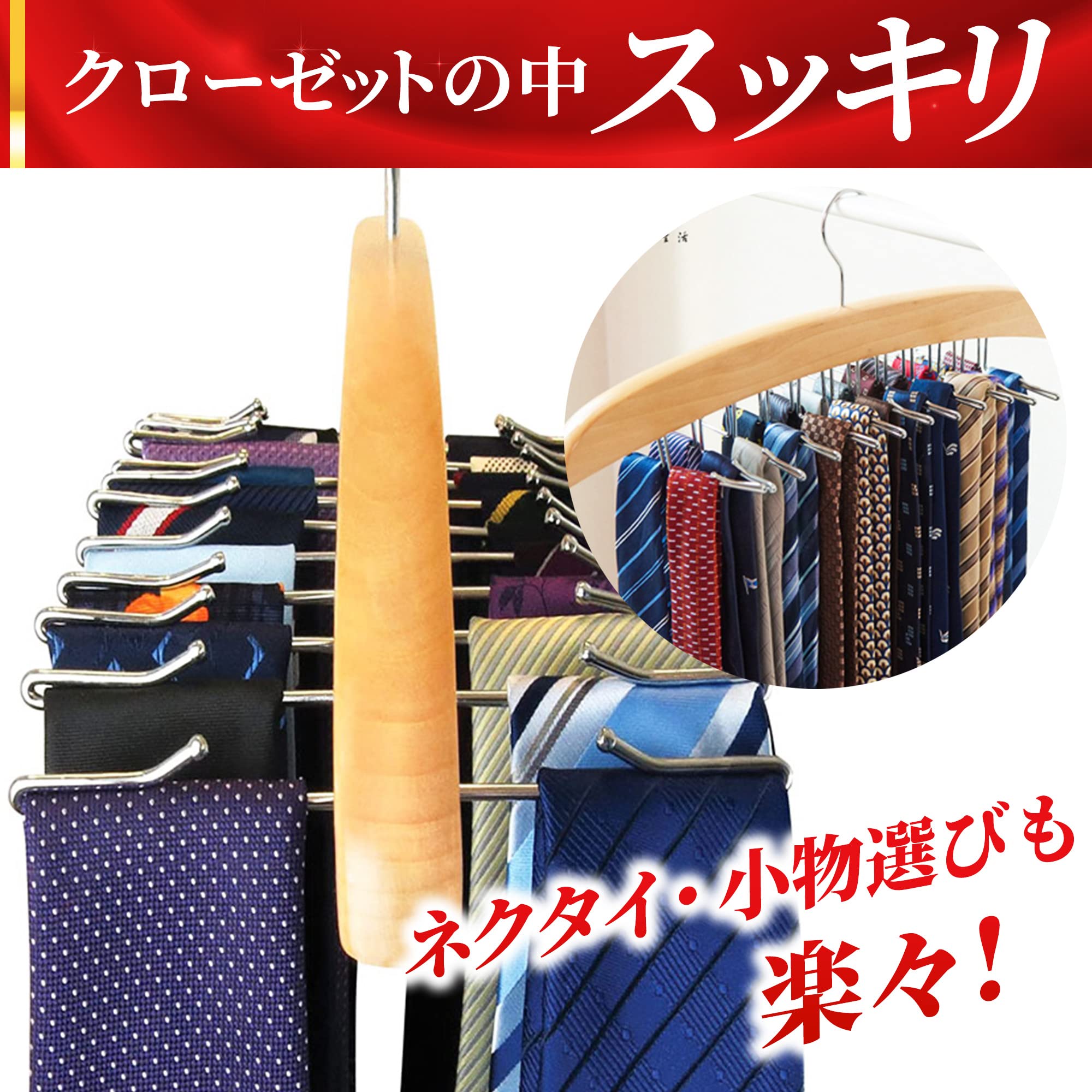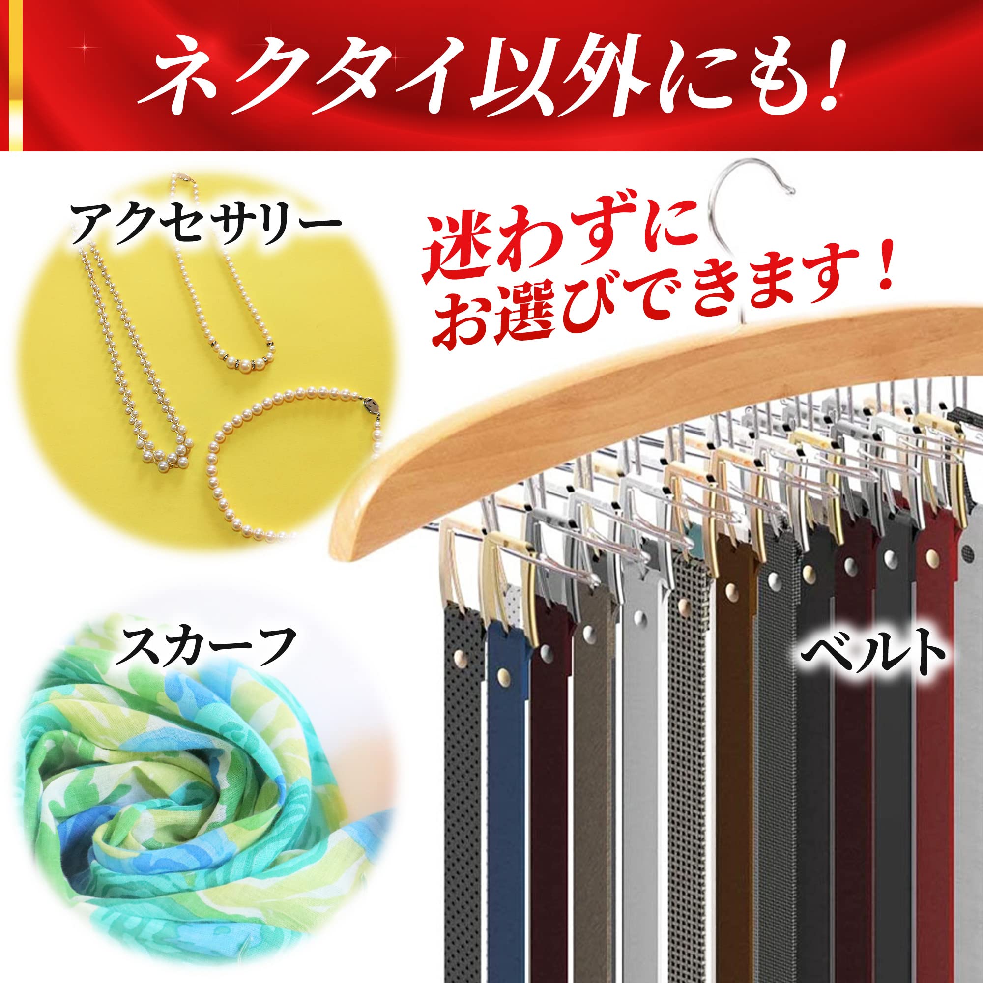 ネクタイハンガー ベルト ハンガー 省スペース 回転 【24本収納】クローゼット 木製 落ちない ネクタイラック 小物 アクセサリー (ナチュラル)