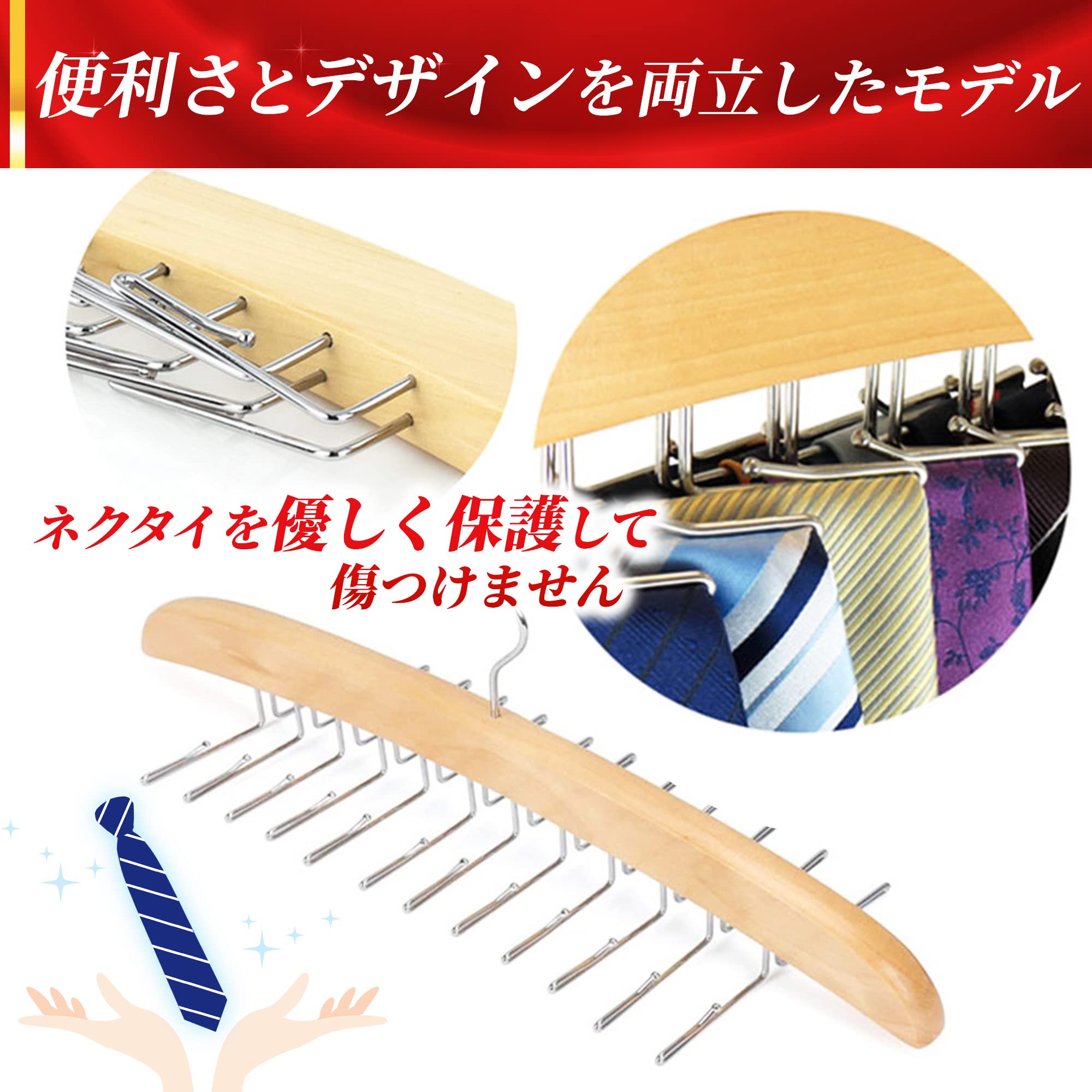 【新着】ネクタイハンガー ベルト ハンガー 省スペース 回転 【24本収納】クローゼット 木製 落ちない ネクタイラック 小物 アクセサリー (ナチュラル)