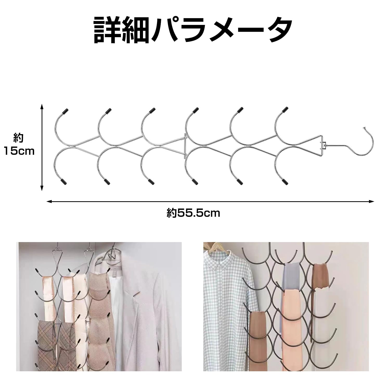 【素材】多機能スカーフ収納ラックは高品質の素材で作られており、丈夫で耐久性があり、変形しにくく、長期間使用することができます。
