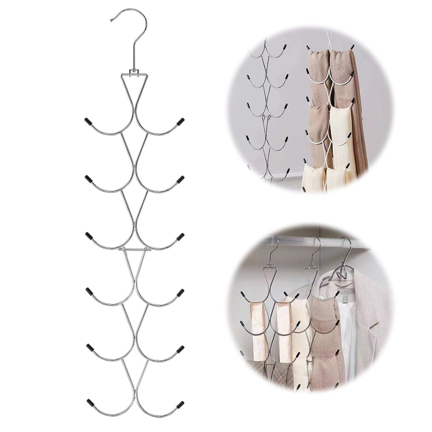 【多層設計】 多機能帽子収納アーテファクトは12個のフックで設計され、縦に空間を利用することができ、一緒に収納しにくいネクタイ、ショールなどを分類して収納することができ、ワードローブをすっきりさせ、また空間を合理的に利用することができます。