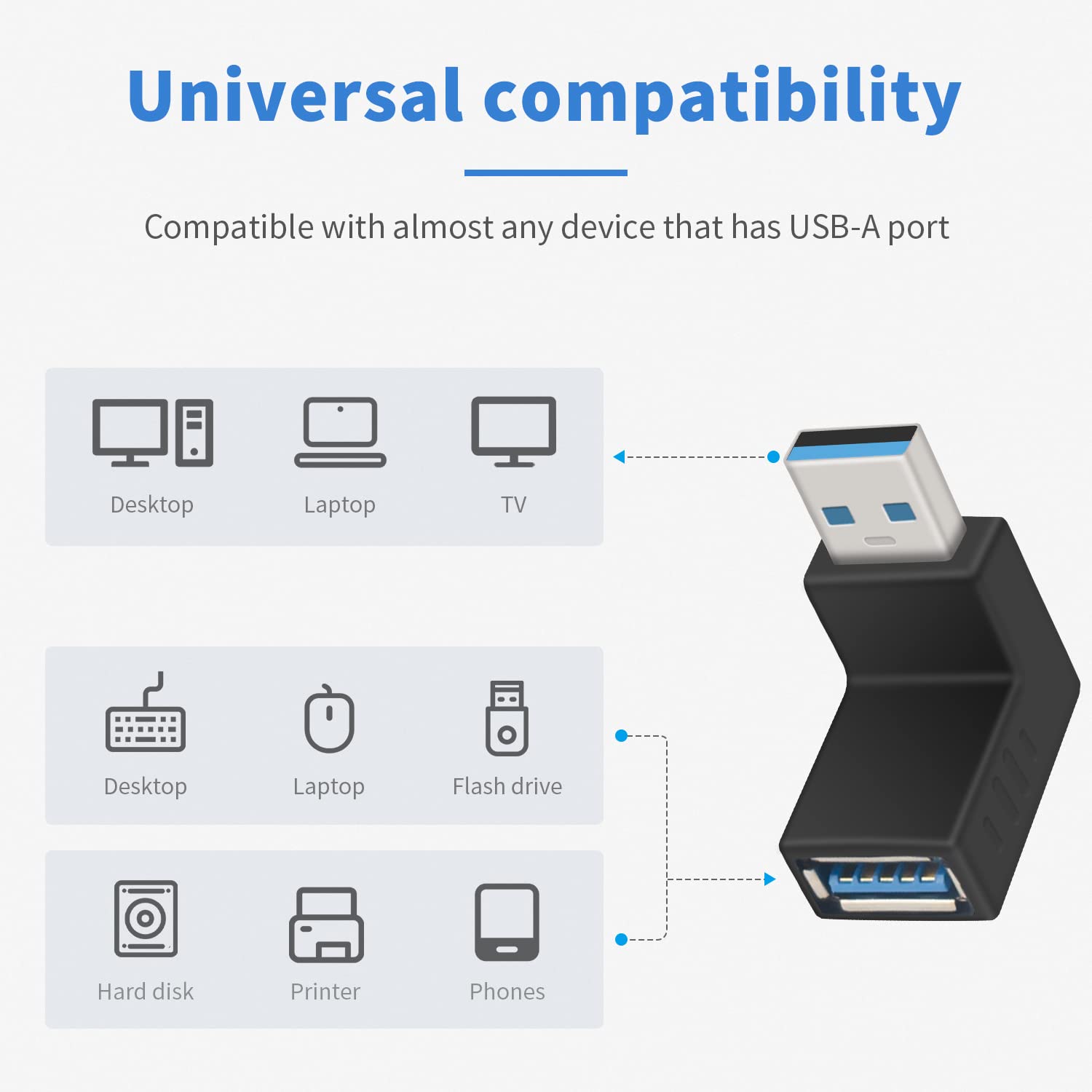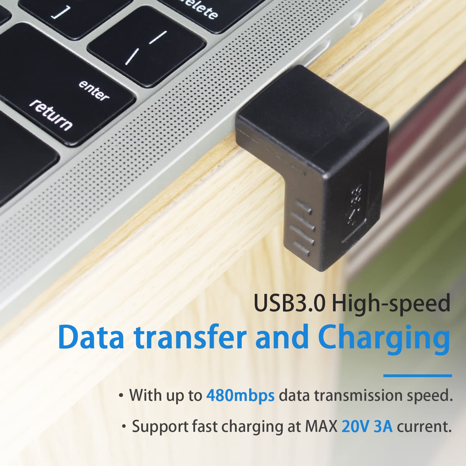 USB L字 メモリ等のでっぱりを解消!ノートパソコン(PC)周りを快適に!USBケーブル 等を介してのスマホとのデータ通信/同期も問題なく動作します!