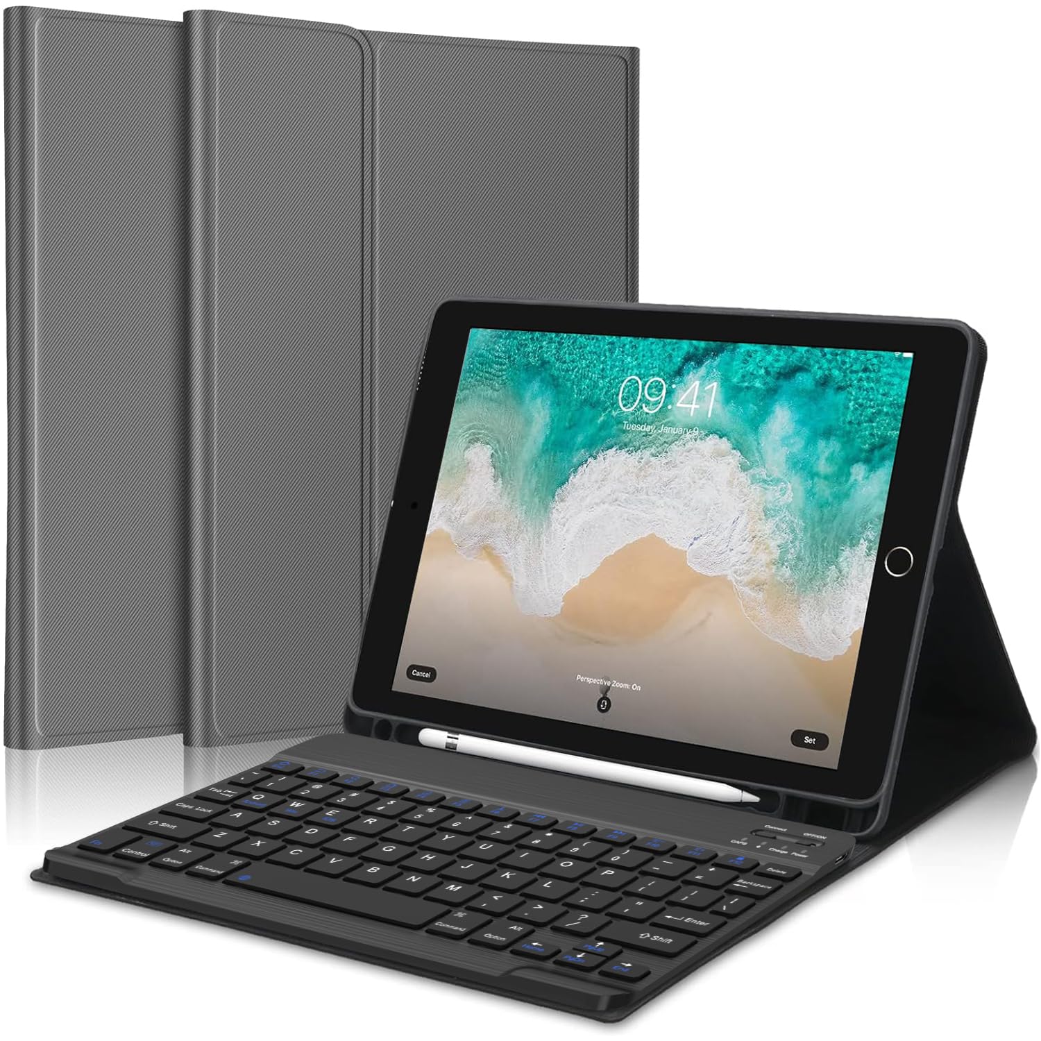 【特価】【2025年昇級版】 iPad 9.7キーボード ケース iPad 第5世代 第6世代 キーボードケース対応 i-Pad pro 9.7/i-Pad air/air2用 キーボード pencil収納 脱着式 Bluetoothキーボード 手帳型 オートスリープ機能付き PUレザー 手帳型 9.7インチ対応 日本語説明書付き(グレー) | GIGATERA