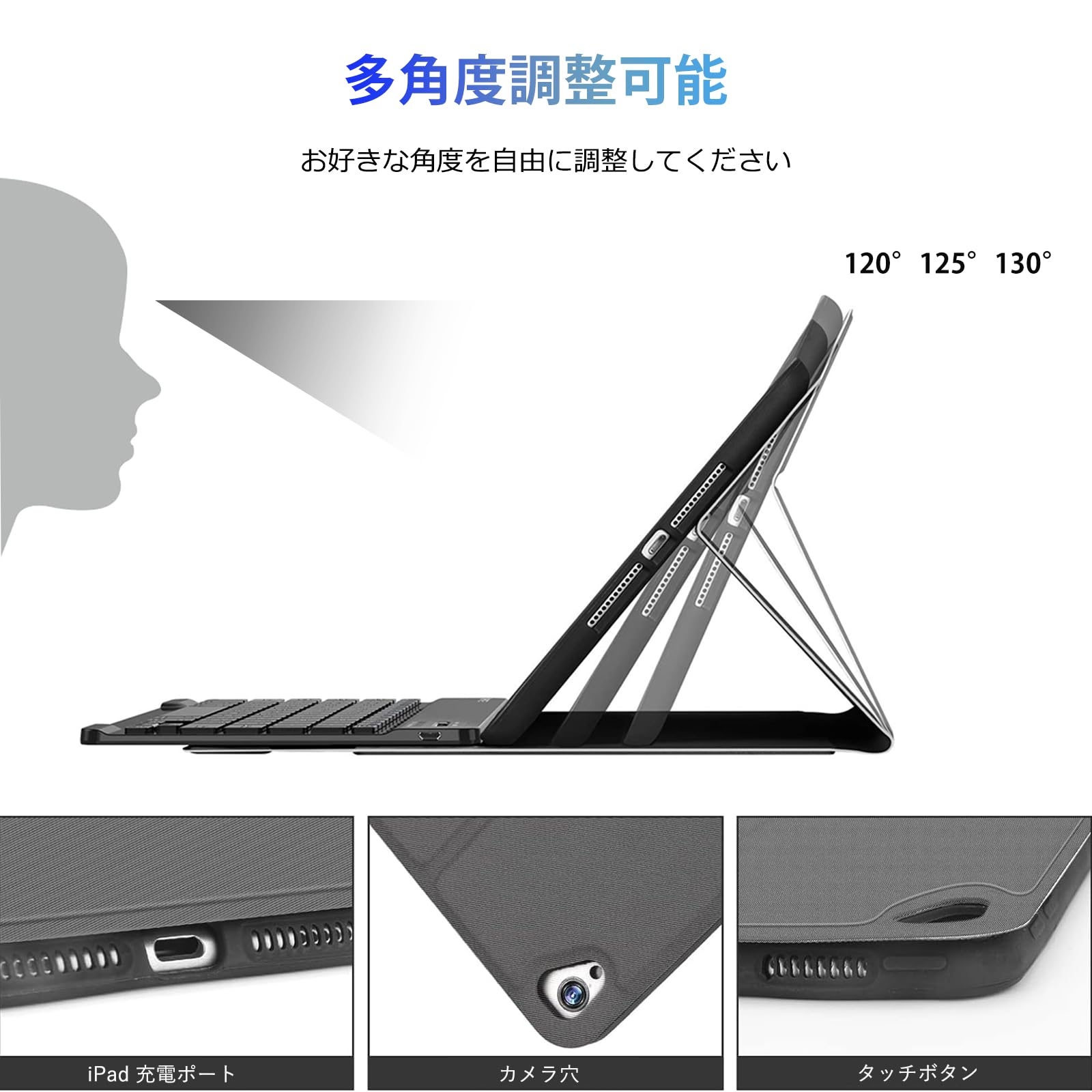 【2025年昇級版】 iPad 9.7キーボード ケース iPad 第5世代 第6世代 キーボードケース対応 i-Pad pro 9.7/i-Pad air/air2用 キーボード pencil収納 脱着式 Bluetoothキーボード 手帳型 オートスリープ機能付き PUレザー 手帳型 9.7インチ対応 日本語説明書付き(グレー)