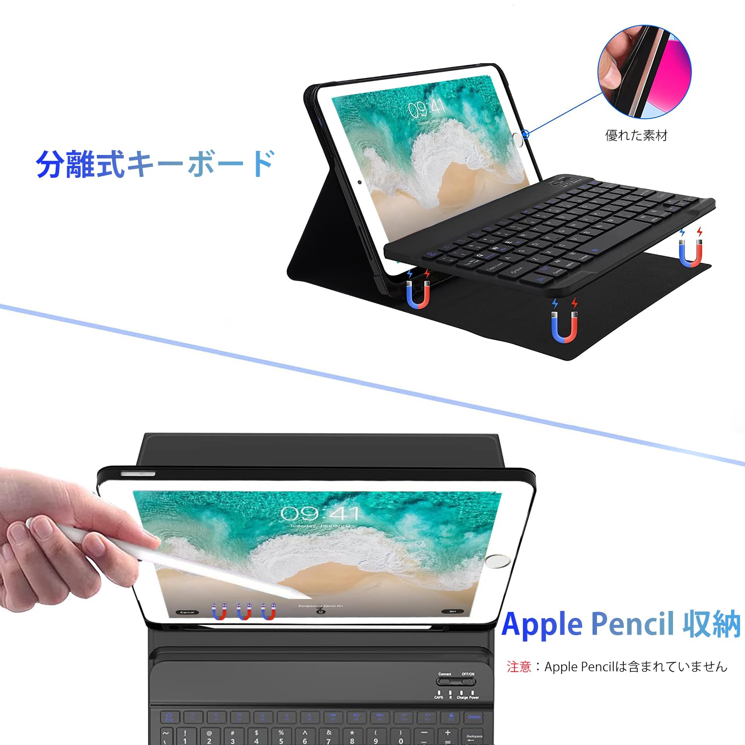 【Apple pencil収納&安全性】Apple pencil収納用のホルダーを付き、収納や持ち運びに便利で、ペンをミスしたの可能性を減っています。 9.7iPadケースはマグネットを内蔵され、カバーをしっかり留めます。バックに入れてもバラバラになりません。