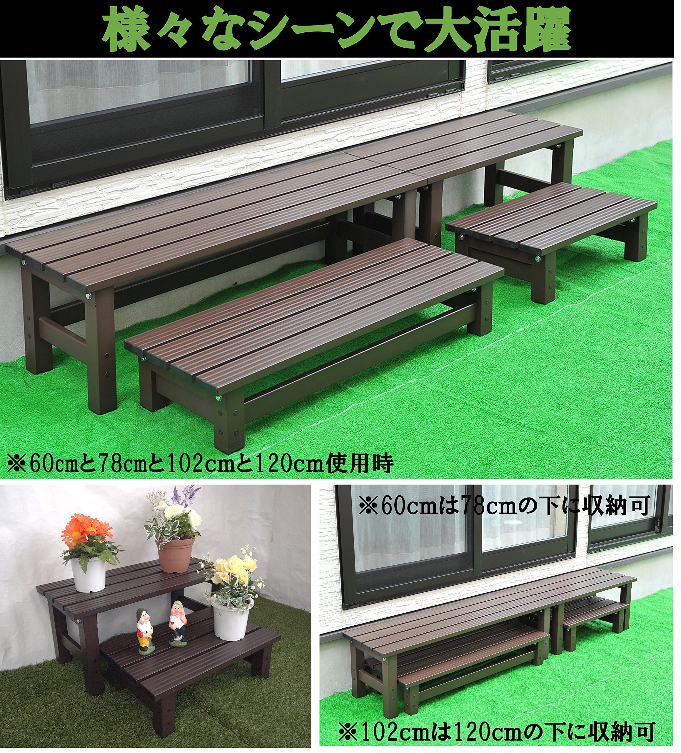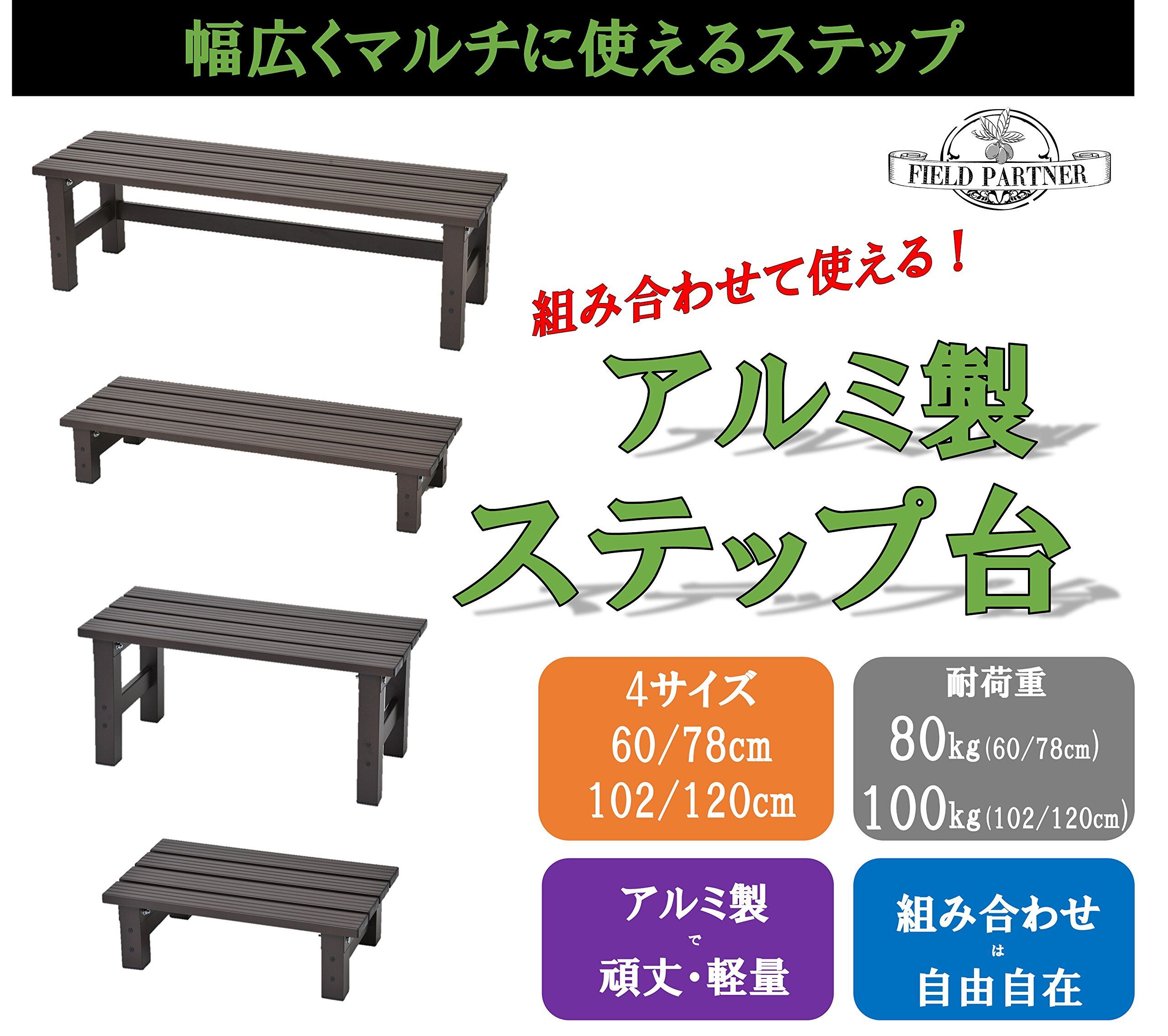 ●マルチに使える便利なアルミ製縁台●のんびりできる縁台をすぐに演出できます。雨や錆に強く、軽量なアルミ製●部屋からベランダやお庭に出る際の段差や、玄関から部屋に上がる際の段差など、ちょっとした段差にあったら嬉しいステップ●ステップとしてだけでなく、ひなたぼっこや洗濯物干し、園芸作業などの休憩時に椅子として重宝します。●サイズも幅60cm、78cm、102cm、120cmと豊富なサイズをご用意いたしました。各サイズを組み合わせれば様々な形で使えます。