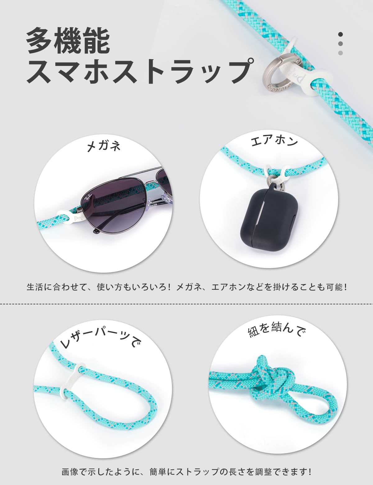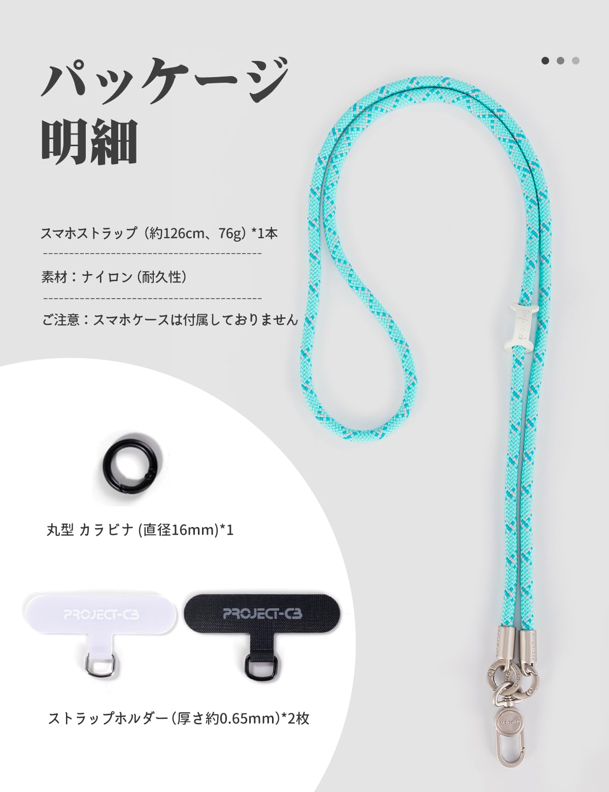 ★【製品仕様】ネックストラップ最長約125cm、直径約7mm、重量約70g。首掛けだけでなく、斜め掛けも可能です。幅は人間工学に基づいたデザインで、太すぎず細すぎず、軽量で快適、首を楽にします。付属のストラップホルダーはわずか0.5mmで、充電に邪魔しません。それにストラップホルダーの幅は45mmだけですので、全機種対応できます。