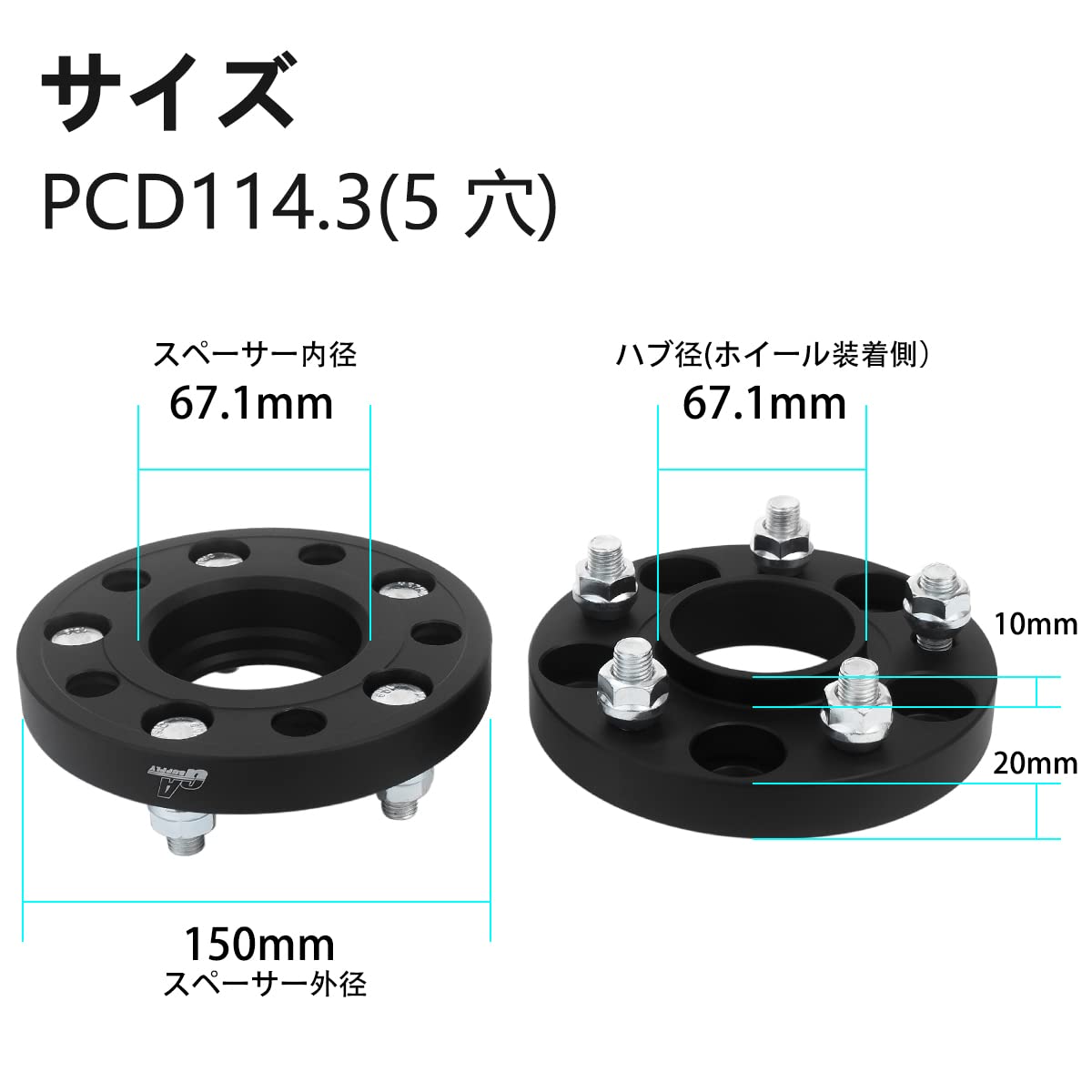 【在庫処分】GAsupply 鍛造ワイドトレッドスペーサー PCD114.3 5H 内径67.1 M12XP1.25 厚さ20mm ワイトレハブリング一体 マットブラック【2枚セット】 | GIGATERA
