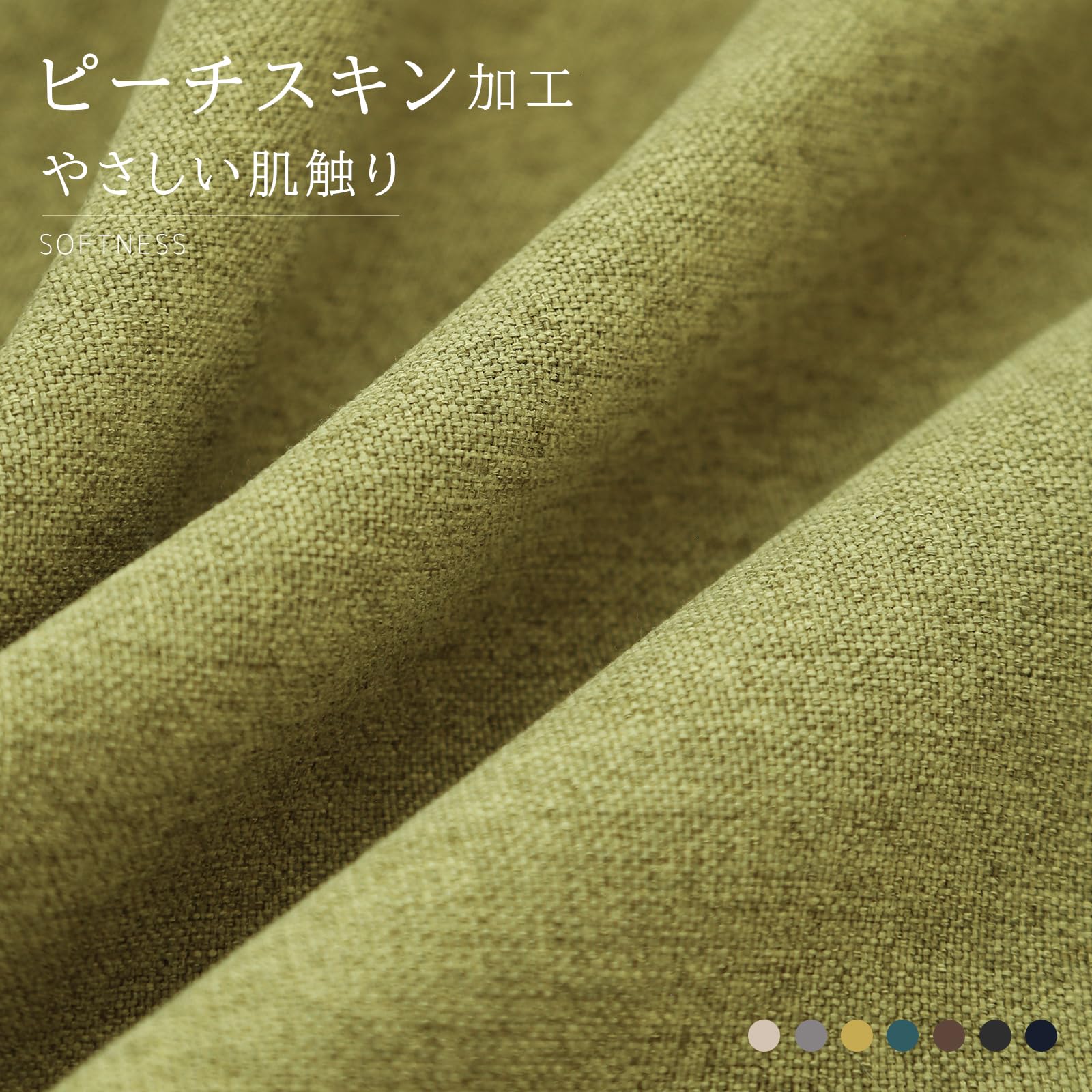 「素材」高品質なポリエステル100%。リネン風の見た目と高級感があり、ピーチスキン加工により手触りが非常に柔らかいです。抗菌、アレルギー防止機能を備え、高い吸水性と速乾性で、洗濯も簡単。環境に優しく、肌に触れても安心です。