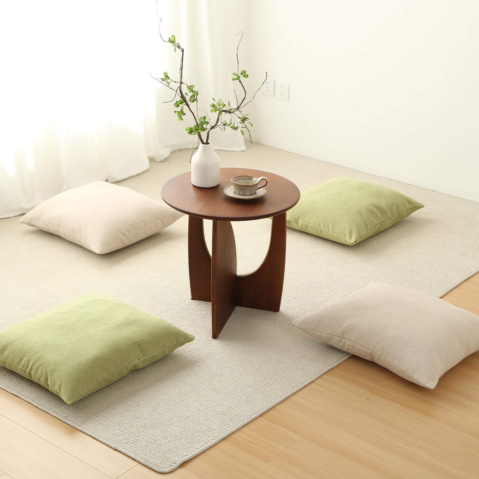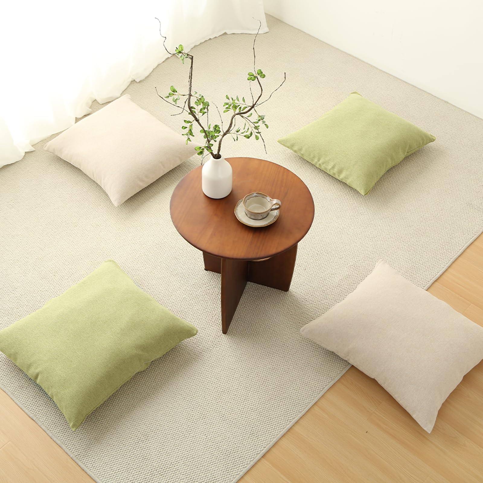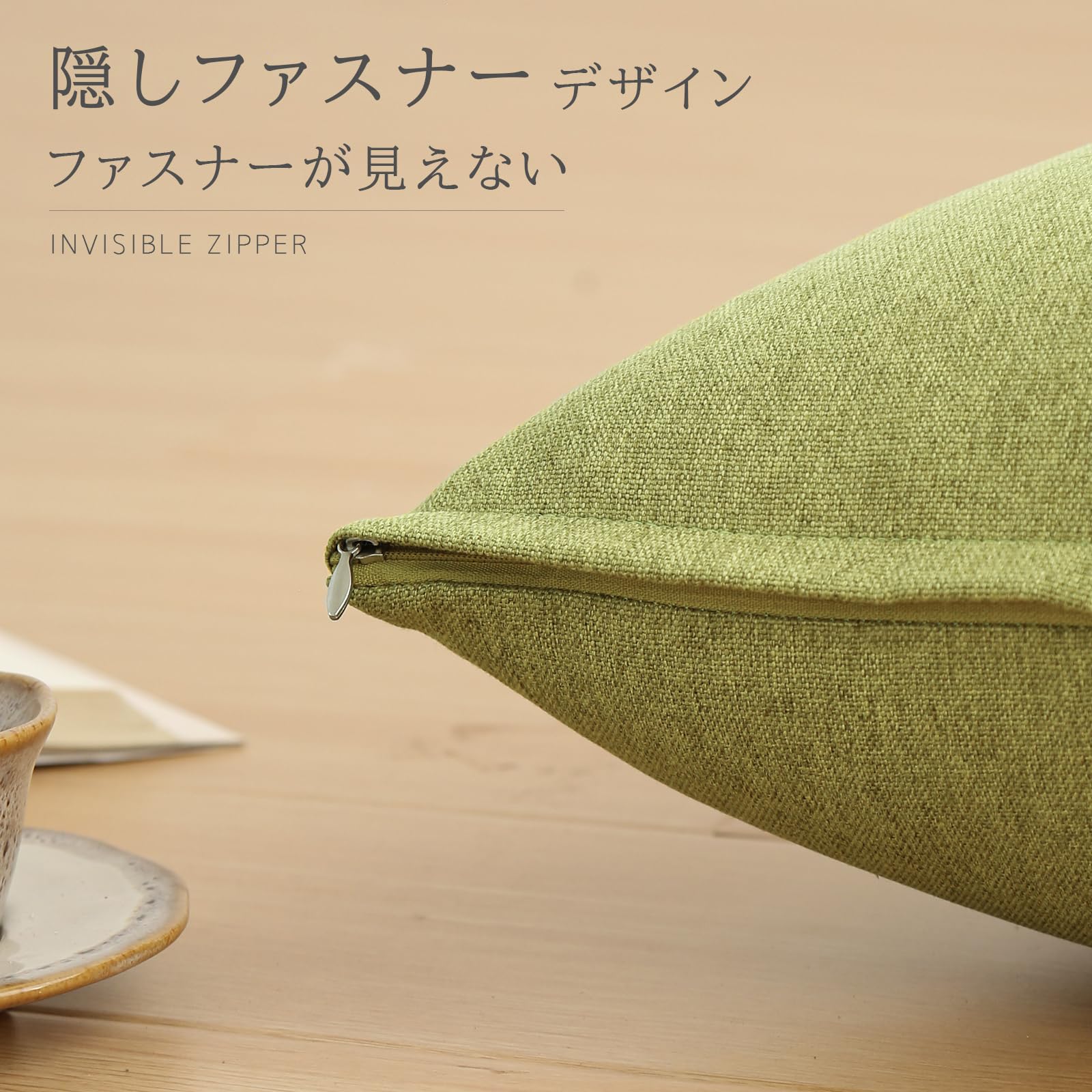 座布団カバー 55x59 5枚セット ざぶとんかばー 銘仙判 北欧 おしゃれ 綿麻テクスチャー リネン風 ピーチスキン ソフトタッチ 装飾枕カバー ライムグリーン