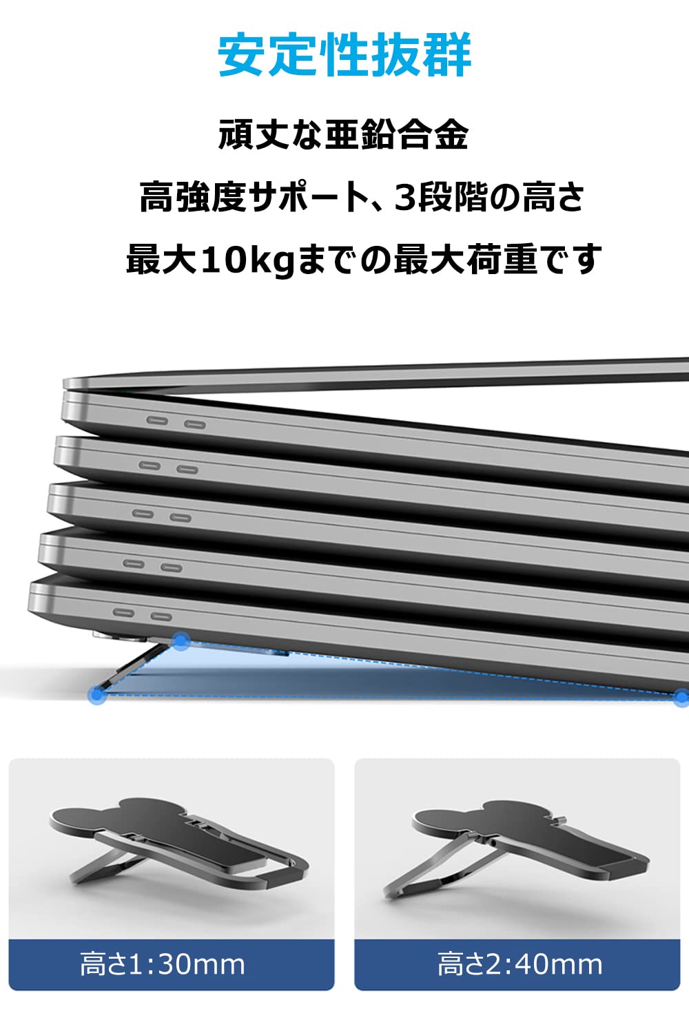 ノートパソコン スタンド ノートPCスタンド ノートパソコンホルダー macbook PCスタンド 人間 工学 貼り付け型 折り畳み式 フットヒート 亜鉛合金製 耐久性 放熱 冷却 軽量 滑り止め 持ち運びに便利 (グレー)