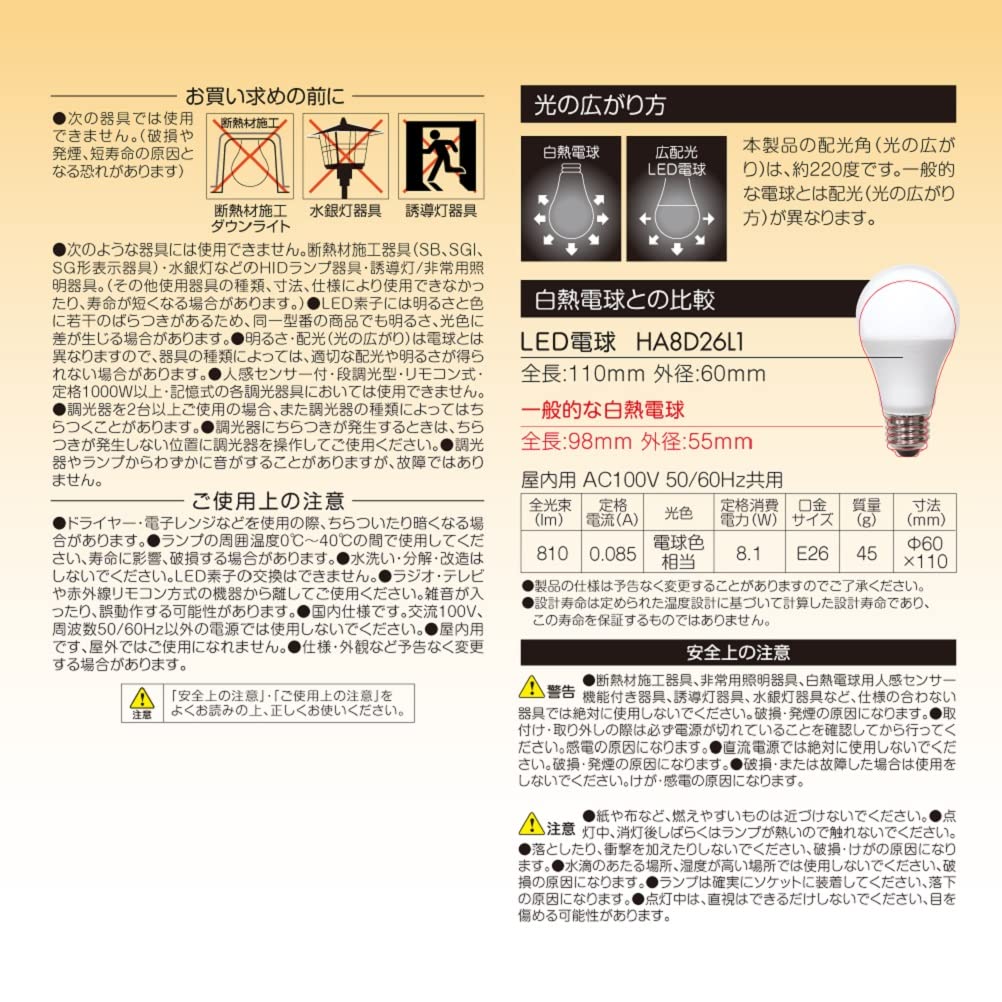スタイルド LED電球 調光器対応 一般電球タイプ 口金直径26mm 60W形相当 電球色 広配光タイプ 密閉器具対応 HA8D26L1