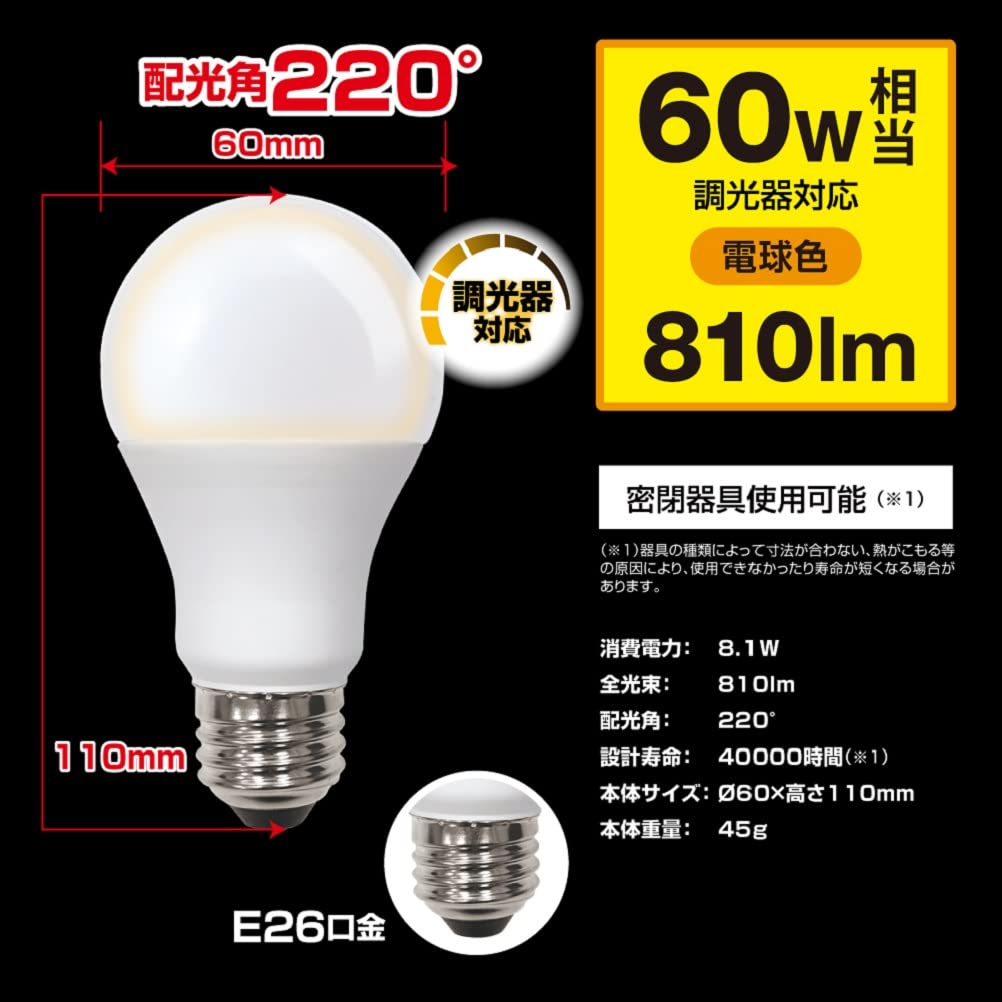 【調光器対応】全光束:810lm(電球60W相当)/消費電力:8.1W