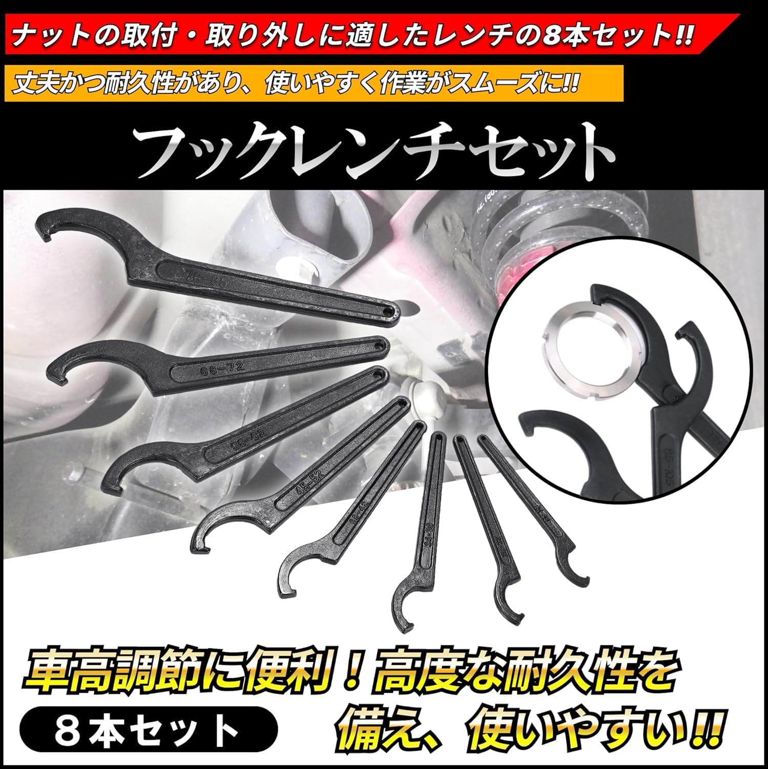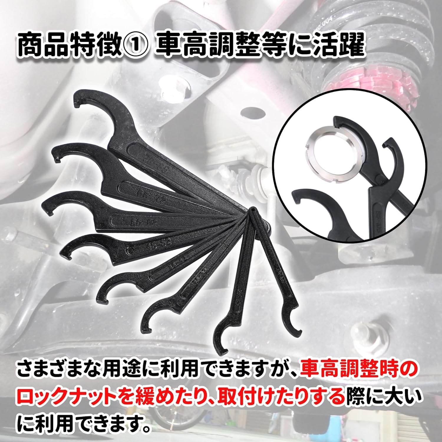 フックレンチ 車高調 レンチ 引掛スパナ 68〜72mm (2 本) セット 車高調整 車高 調整 工具 整備 メンテナンス スパナ フックスパナ ピンスパナ フックタイプ (2)