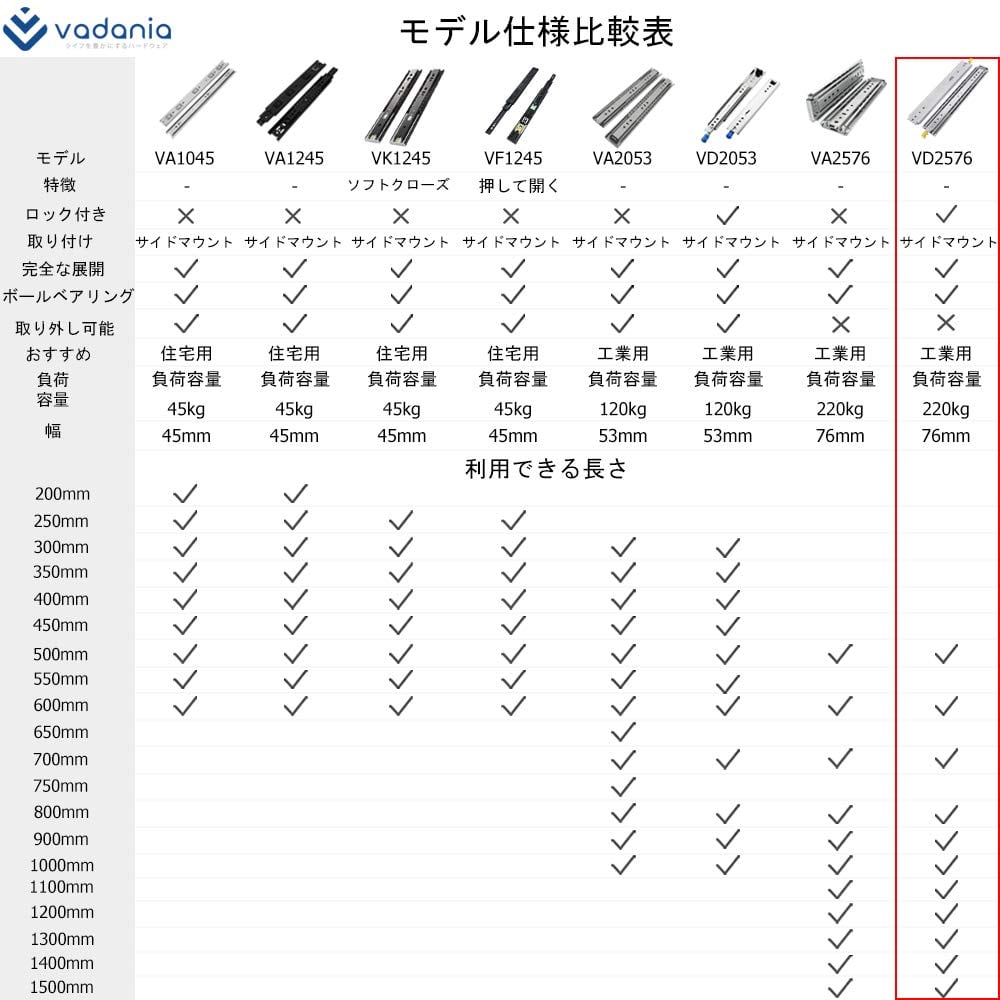VADANIA 超重量用スライドレール ロック付き 1000mm Heavy Duty引き出しスライド VD2576 工業用 左右1セット