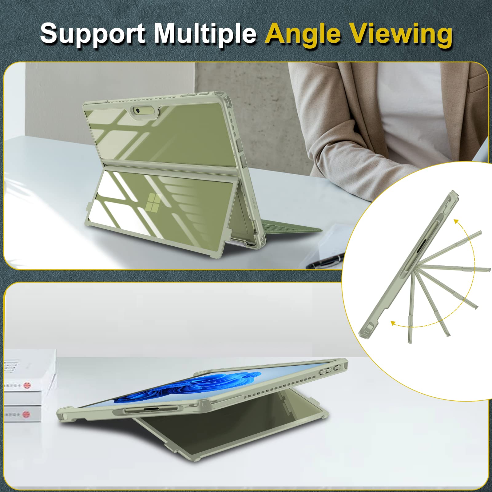Fintie for Microsoft Surface Pro 11 /10 2024 / 9 / 9 5G 2022 13インチ ケース タイプカバー ソフトTPU 全面保護型 スタンド保護機能付き キックスタンドケース 軽量 薄型 耐衝撃(グリーン)