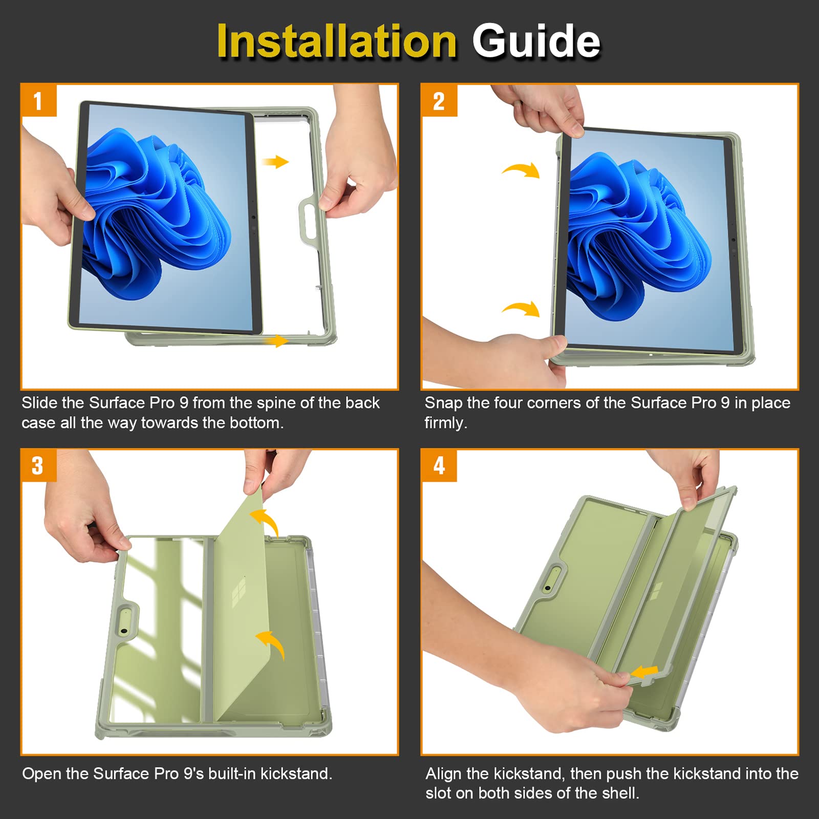 【新着】Fintie for Microsoft Surface Pro 11 /10 2024 / 9 / 9 5G 2022 13インチ ケース タイプカバー ソフトTPU 全面保護型 スタンド保護機能付き キックスタンドケース 軽量 薄型 耐衝撃(グリーン) | GIGATERA