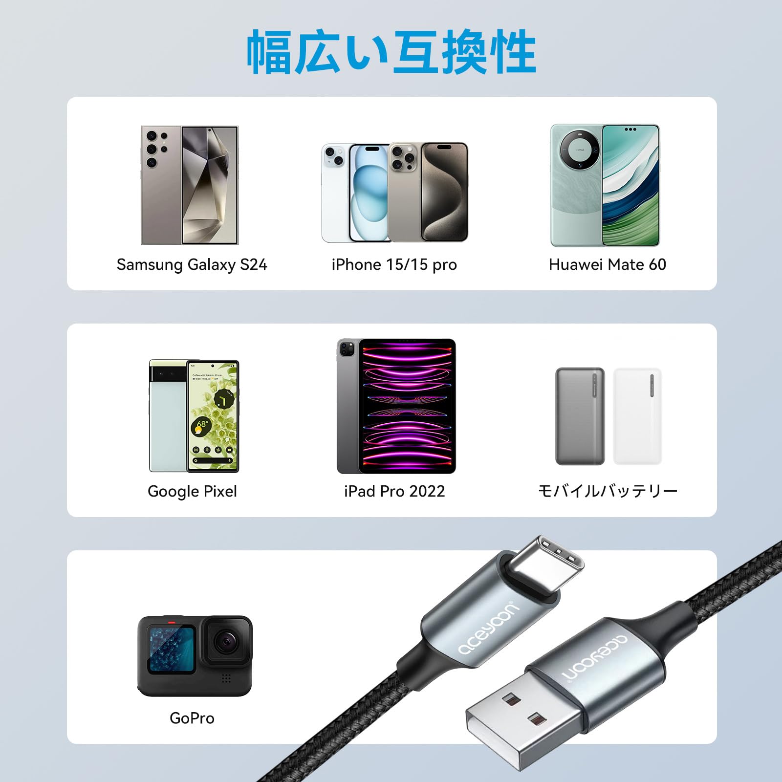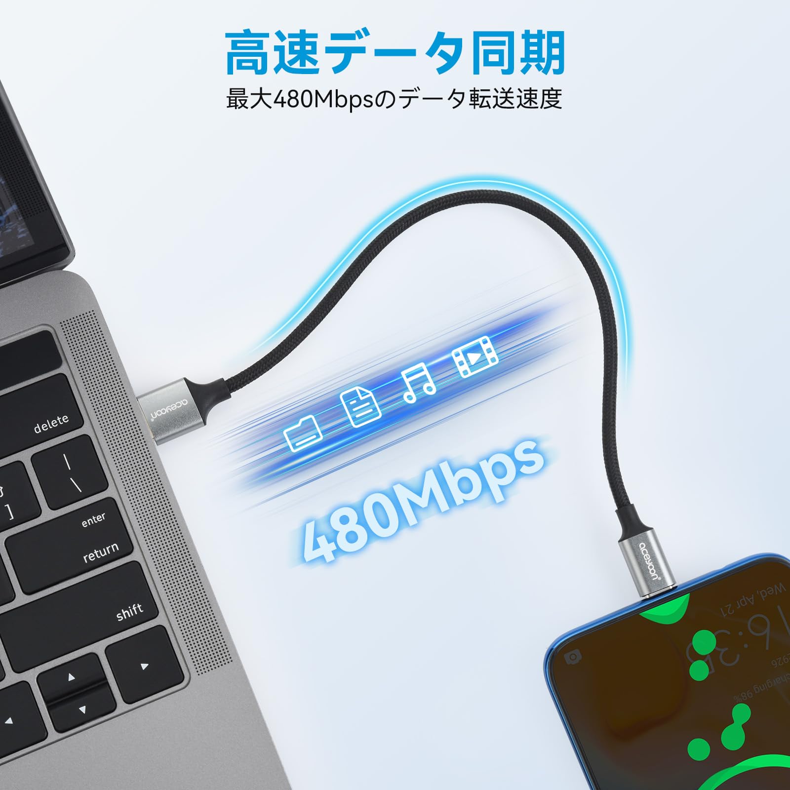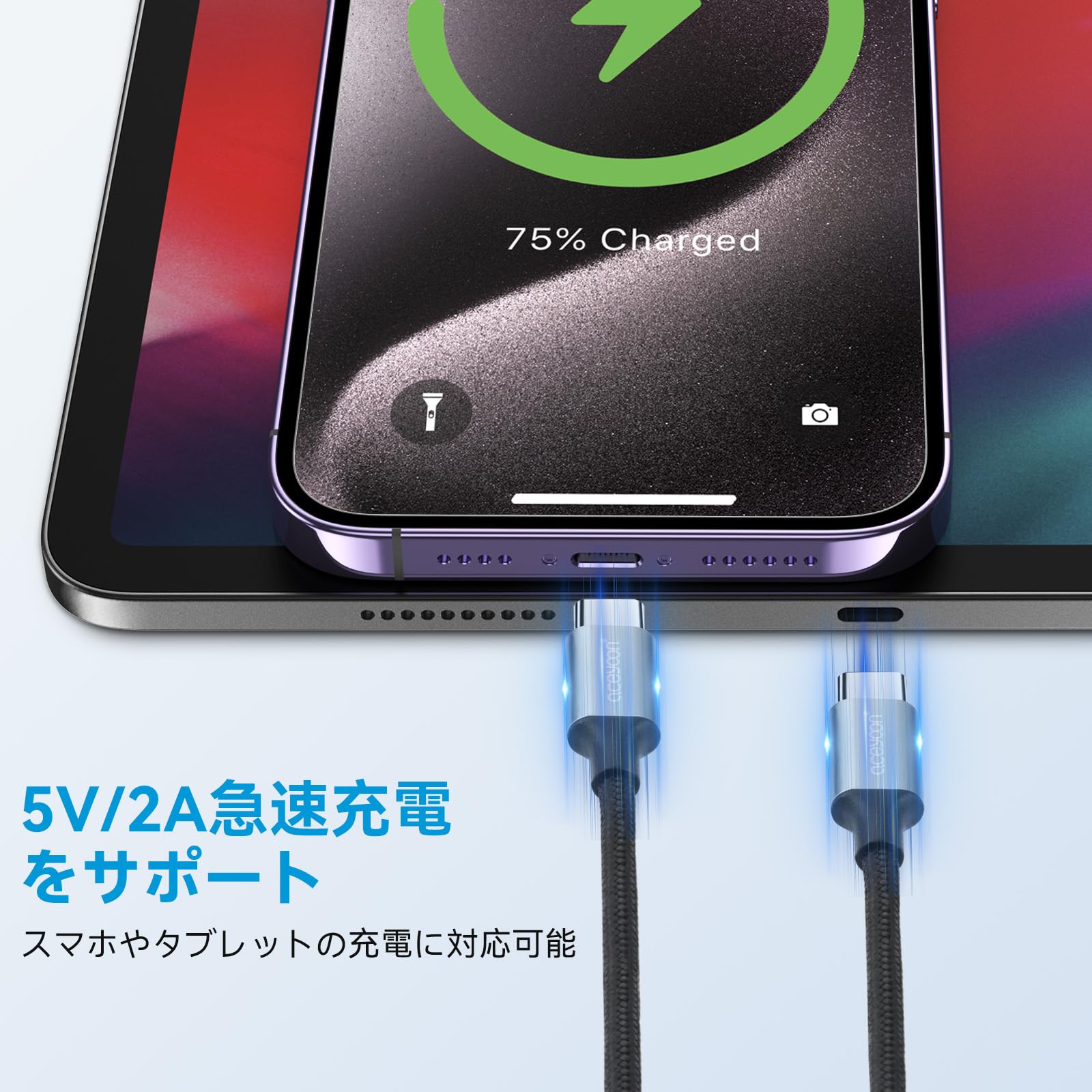 【急速充電と高速データ伝送】当USB Cケーブルは純銅芯線を採用しており、電気抵抗が低く、最大5V/2Aの出力になって、充電時間を節約します。56kΩの抵抗器が内蔵され、安心且つ安全な充電を確保します。USB2.0規格で最大480Mbpsのデータ転送速度をサポートし、HD写真、映画などの大容量ファイルもの高速転送を簡単に実現できます。 (ご注意:実際の充電スピードはデバイスや充電器などの影響を受けますので、実際の充電スピードを基準にしてください。)