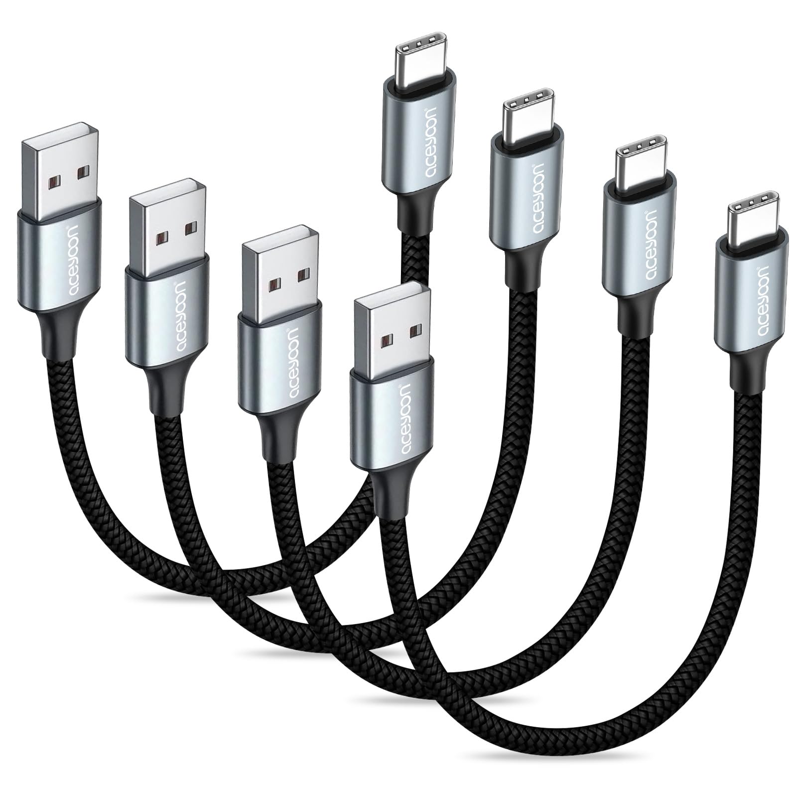 aceyoon USB Type C ケーブル 20cm 短い 4本セット タイプC ケーブル 0.2M 最大3A USB-A to USB-C 20センチ 高耐久ナイロン編み USB-C 機器に対応