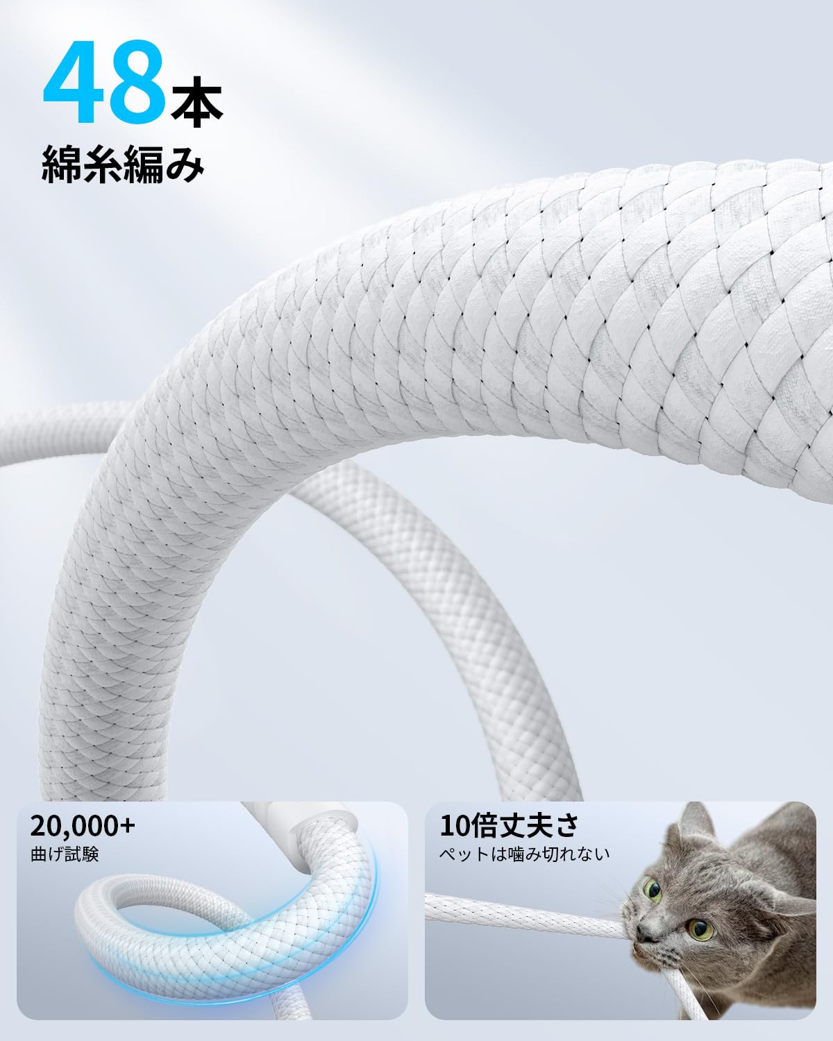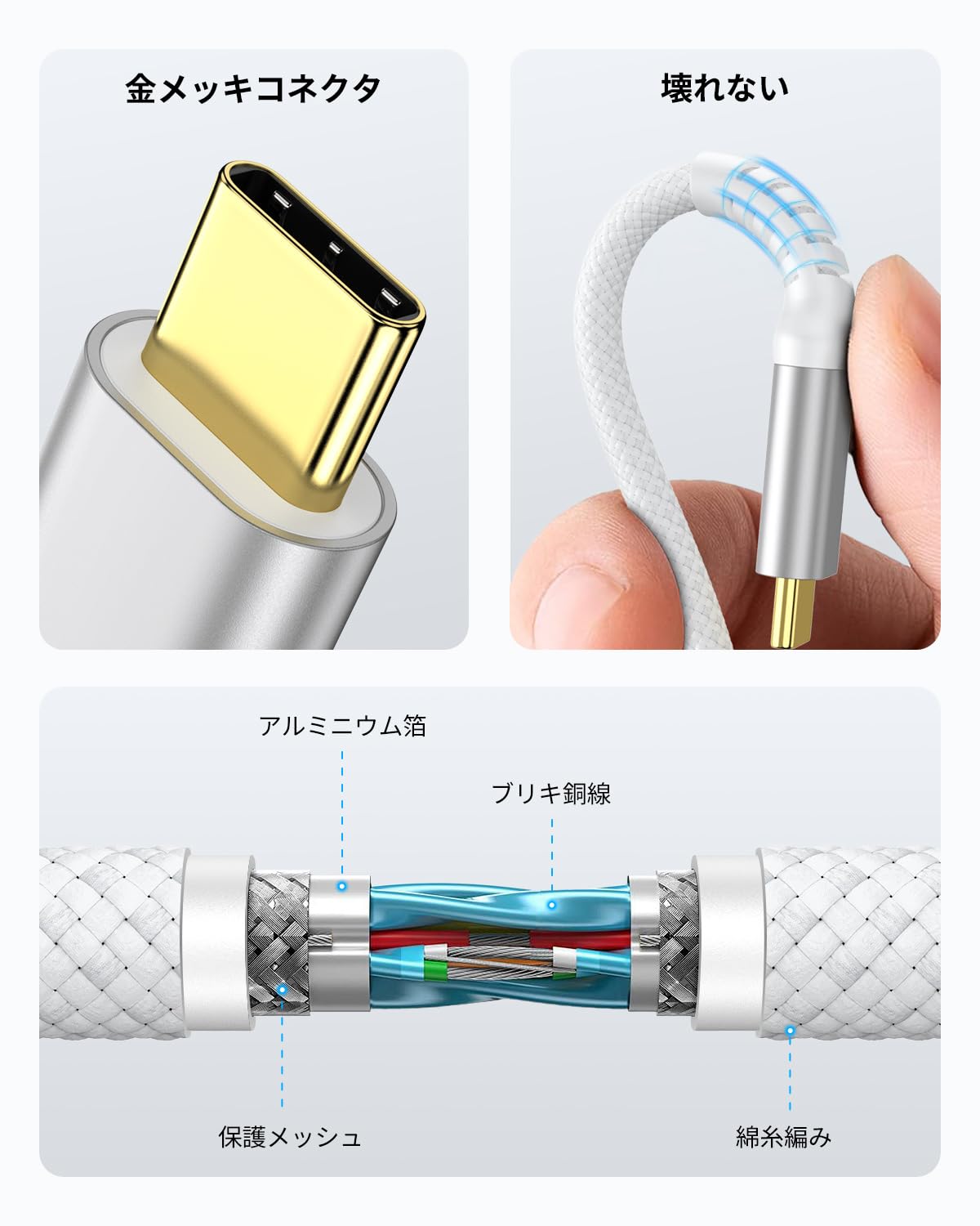 ?【優れた耐久性】金メッキコネクタを備えており、サビにも強く、腐食防止の金メッキコネクタは最適な信号解像度を実現します。それに、編み込まれた高耐久のナイロン素材を採用され、20,000回以上の折り曲げに耐えうるまでに圧倒的な持続力を持ちます。極めて高い耐久性を確保しています。