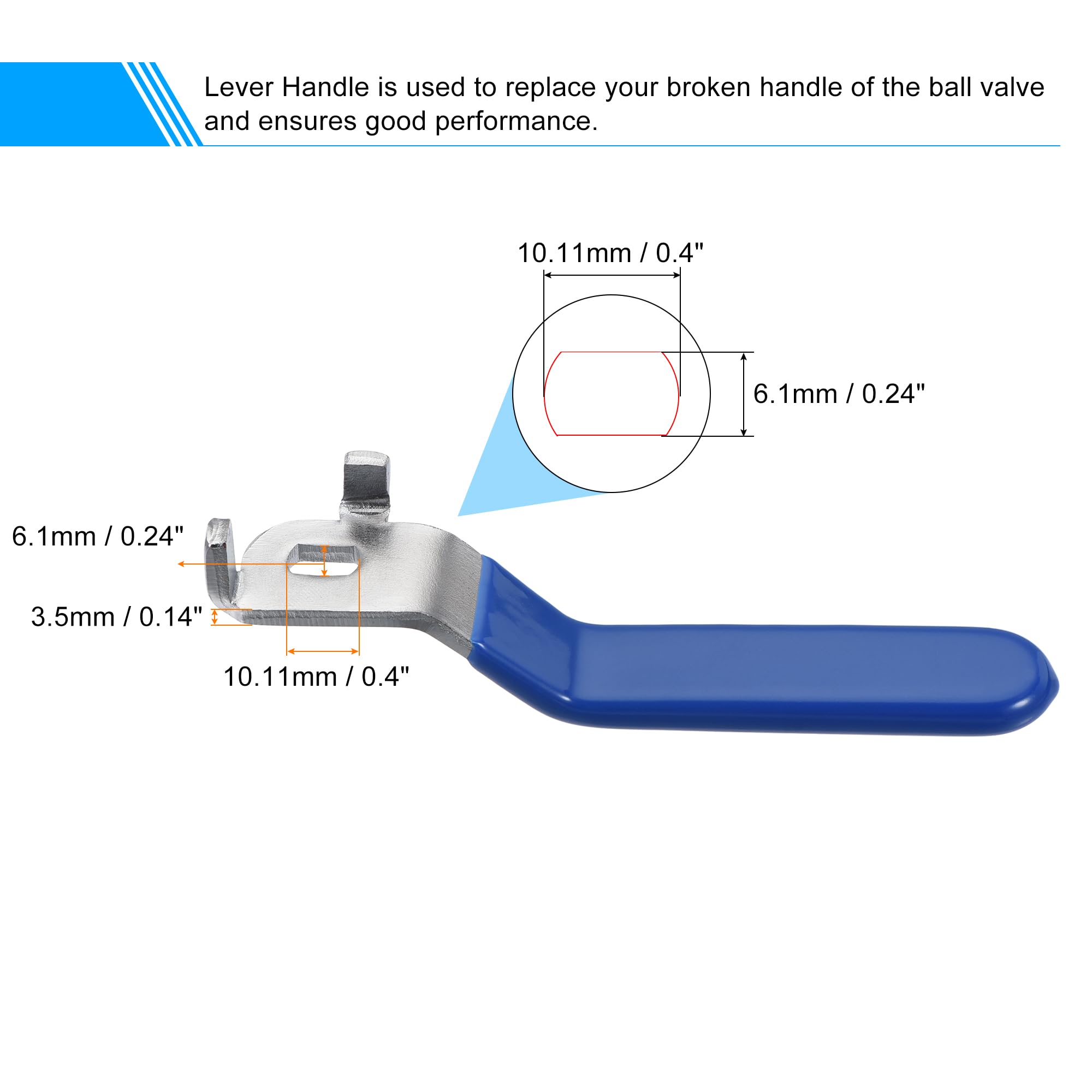 uxcell レバーハンドル 鉄素材製クロムメッキ 交換用 クォーターターン プラスチックグリップ付き ブルー ボールバルブ用