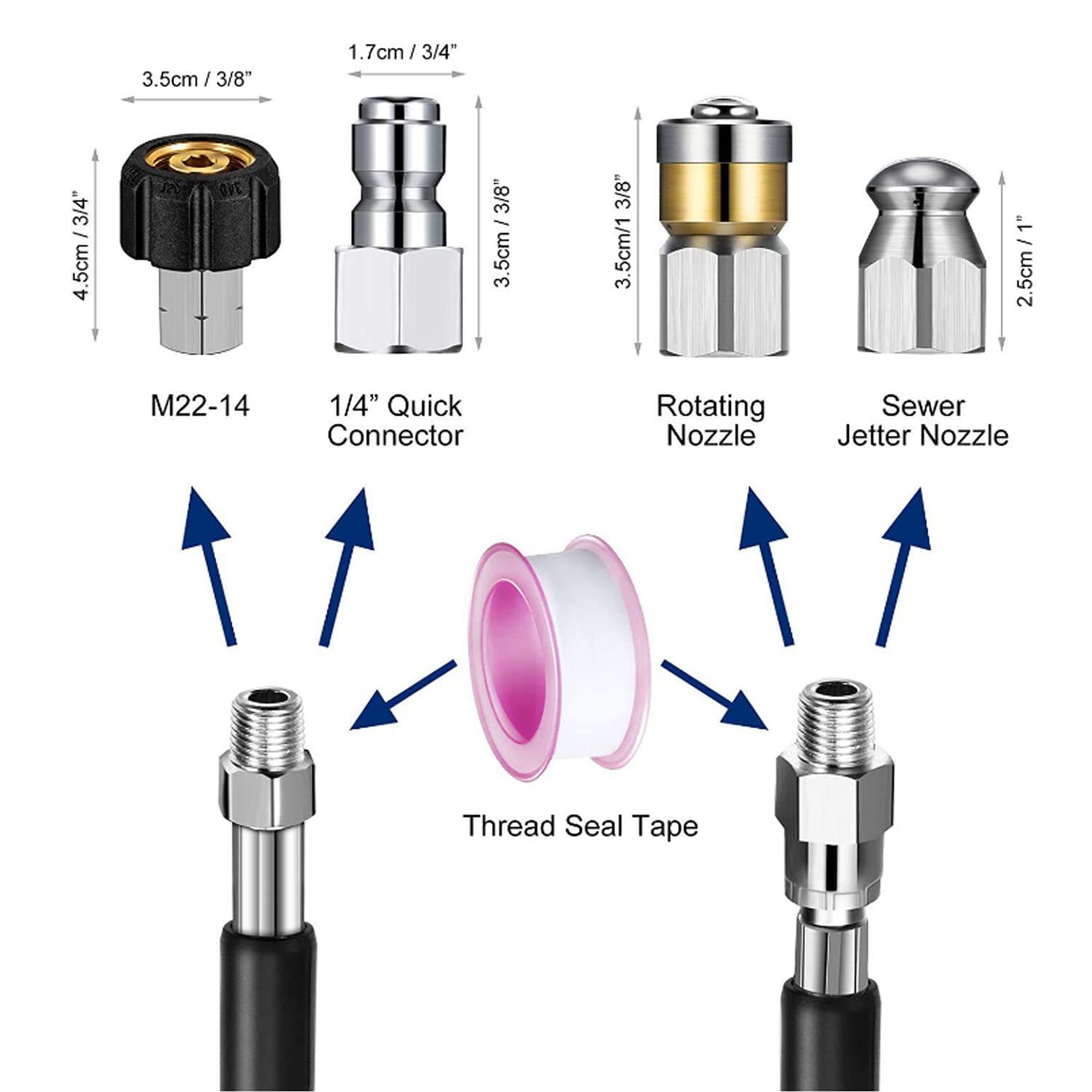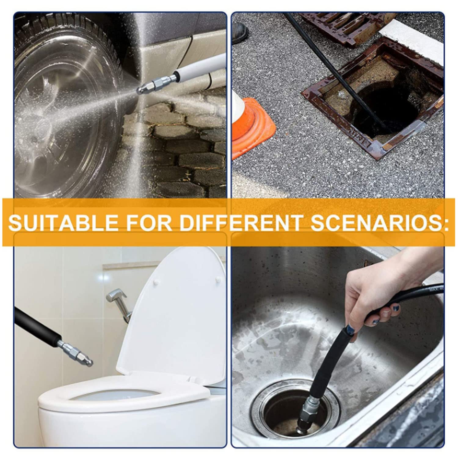 【パイプクリーニングホース】:耐久性のある固体コネクタは、圧力洗浄器、ガン、噴射ノズルでしっかりと接続でき。