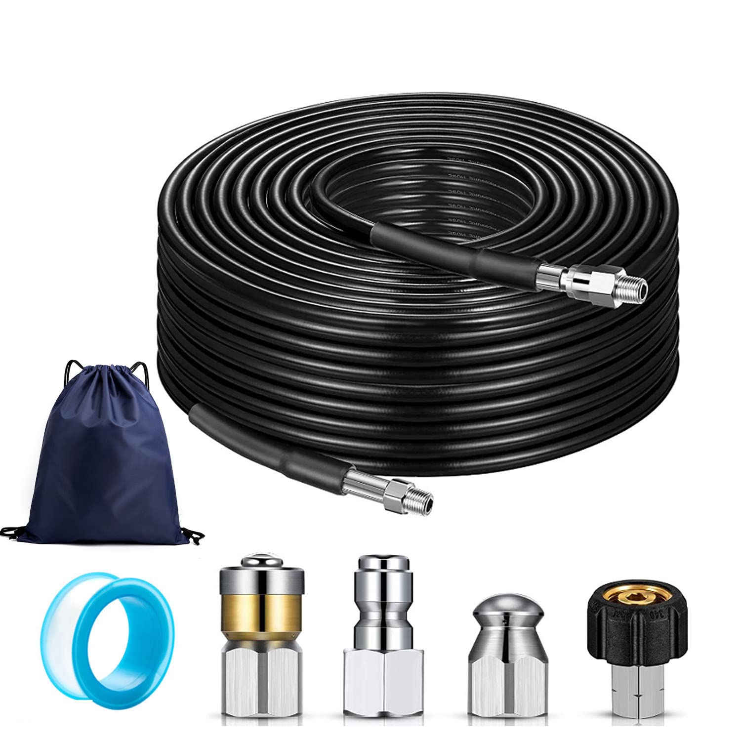 【人気】パイプクリーニングホース ケルヒャー用 高圧洗浄機 配管洗浄ホース 10M 逆噴射 排水管清掃ホース 排水管洗浄ホース Karcher K2〜K7に対応 収納袋 + シールテープ付(Smilerain)