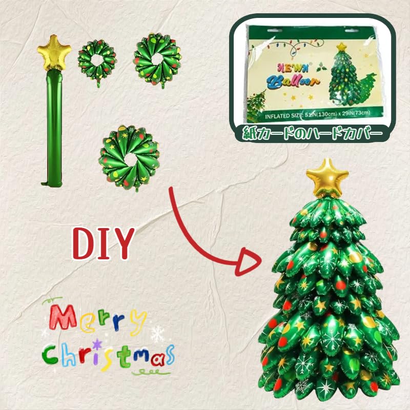 【使い方】とても簡単に使えます!風船に空気を入れ、パーツを組み合わせると、立つツリーになります。屋内に置いても屋外に置いても、すぐにクリスマス気分になります。高品質の素材でできており、屋外に置いても心配ありません!