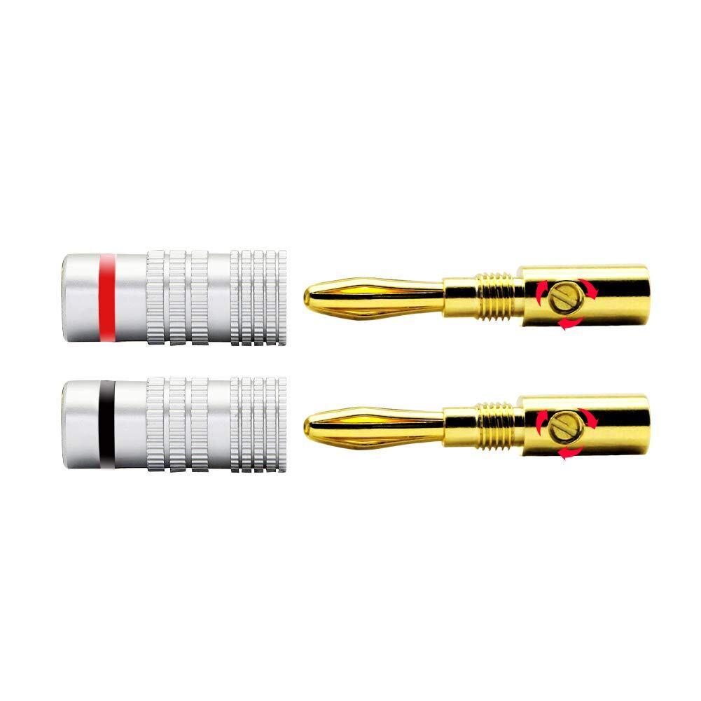 【特価在庫】CERRXIAN 4mmソルダーレス バナナプラグ コネクタ バナナプラグ スピーカー【リア接続タイプ / 24k金メッキ/金属シェル】 ネジ締め方式のバナナプラグ スピーカーケーブル スピーカーワイヤー 壁プレート用(4本セット / 2ペア)
