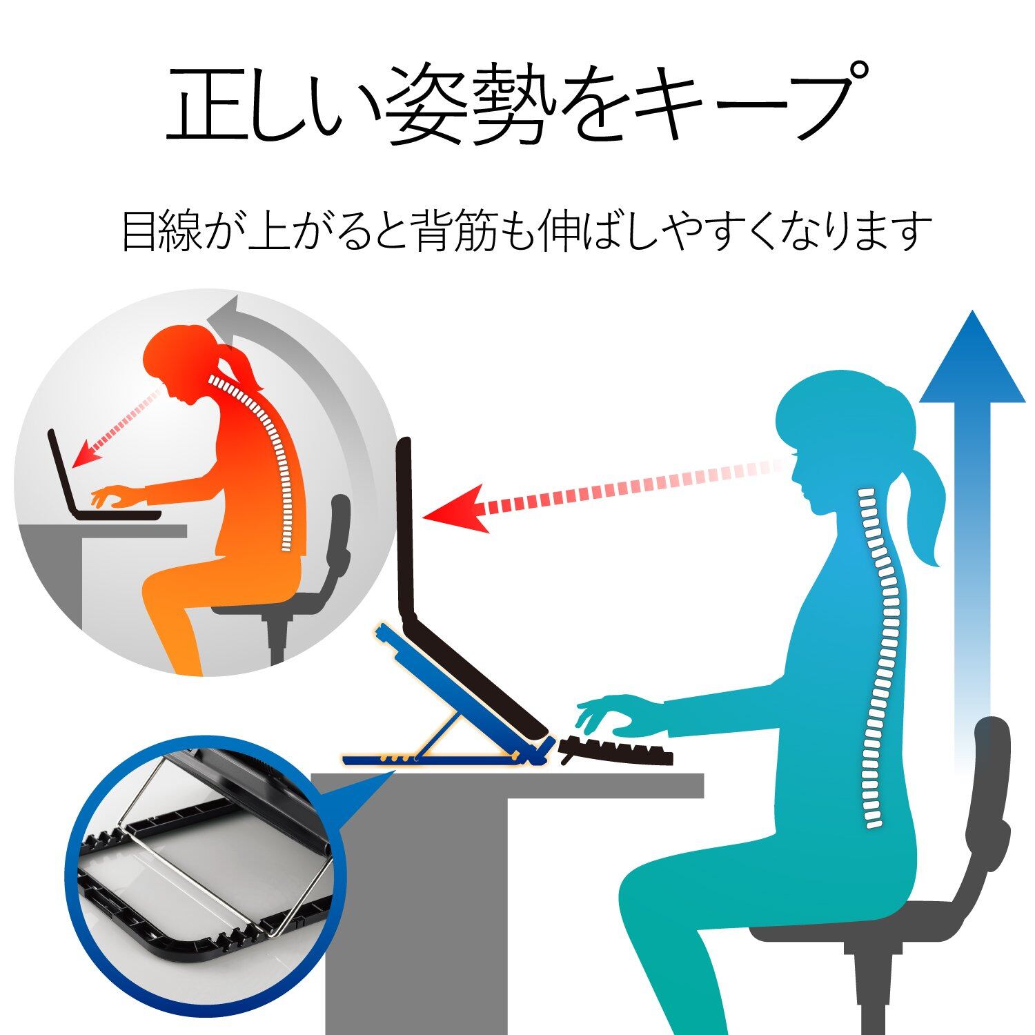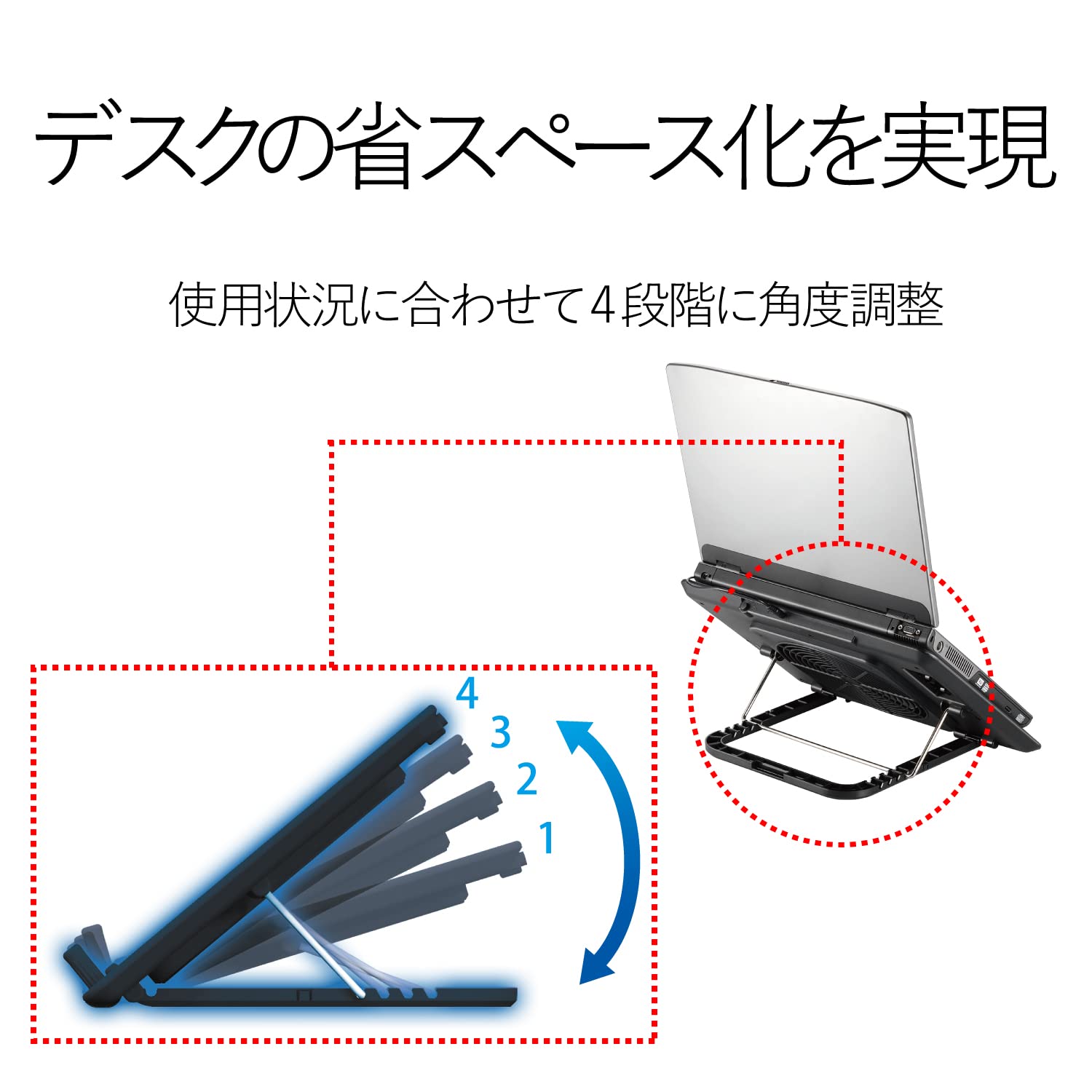 ■使用状況に合わせてノートPCの設置角度を4段階に調節可能です。