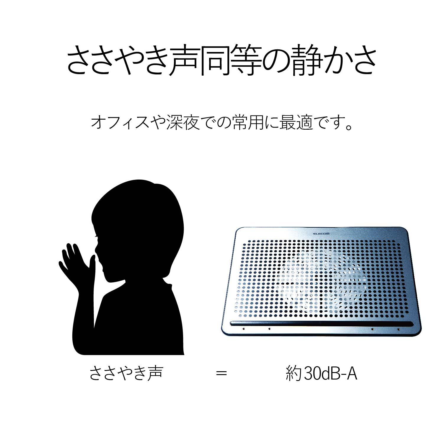 ■ファンの動作音は一般生活におけるささやき声程度の30db-Aで、オフィスや深夜の家庭での常用に最適な静音モデルです。