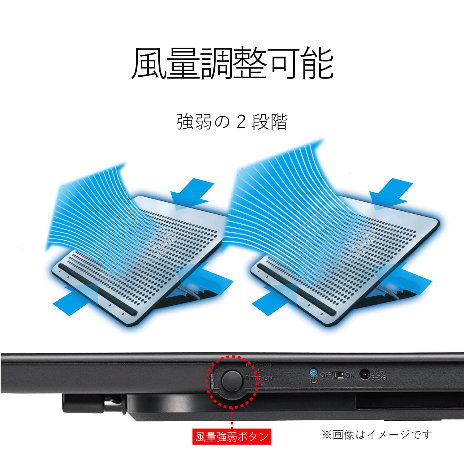 ■強・弱の2段階の風量調節ができるプッシュ式スイッチが付いています。